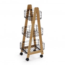 SCAFFALE 3 RIPIANI CON RUOTE Referencia: 21810121 Medidas: 50x24x83 cm. Material: Acciaio Melanina Packaging: SCATOLA MARRONE VERSA Info: Bambù+MDF