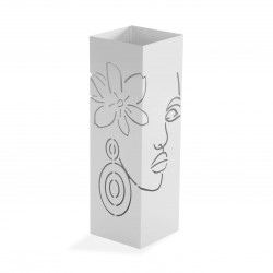 PORTAOMBRELLI BIANCO KAMIRA Referencia: 21700228 Medidas: 15.5x15.5x49 cm. Material: Metallo Packaging: BORSA DI PlASTICA Info: Materiale?: 0.8mm ferro Con vassoio PVC