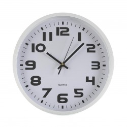 OROLOGIO CUCINA BIANCO 25CM Referencia: 19520150 Medidas: 3.8x25x25 Ø25 cm. Material: Plastica Packaging: SCATOLA BIANCA CON FINESTRA Info: Movimento silenzioso