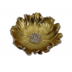 CENTROTAVOLA FIORE DORATO Referencia: 20820059 Medidas: 18x17x5.2 cm. Material: Resina Packaging: SCATOLA MARRONE VERSA Info: 0.33333 kg. Versa Label