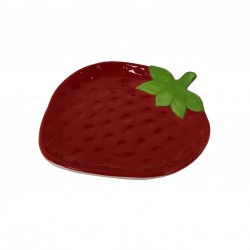 PIATTO FRAGOLA Referencia: 22110145 Medidas: 15x12x2 cm. Material: Ceramica Packaging: SCATOLA MARRONE Info: 0.152778 kg. VERSA BACKSTAMP BARCODE LABEL STRAWBERRY DESING