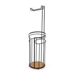 PORTAROTOLO BAGNO NERO Referencia: 22250191 Medidas: 16x16x60 cm. Material: Bambù Ferro Packaging: BORSA DI PlASTICA Info: 0.708333 kg.