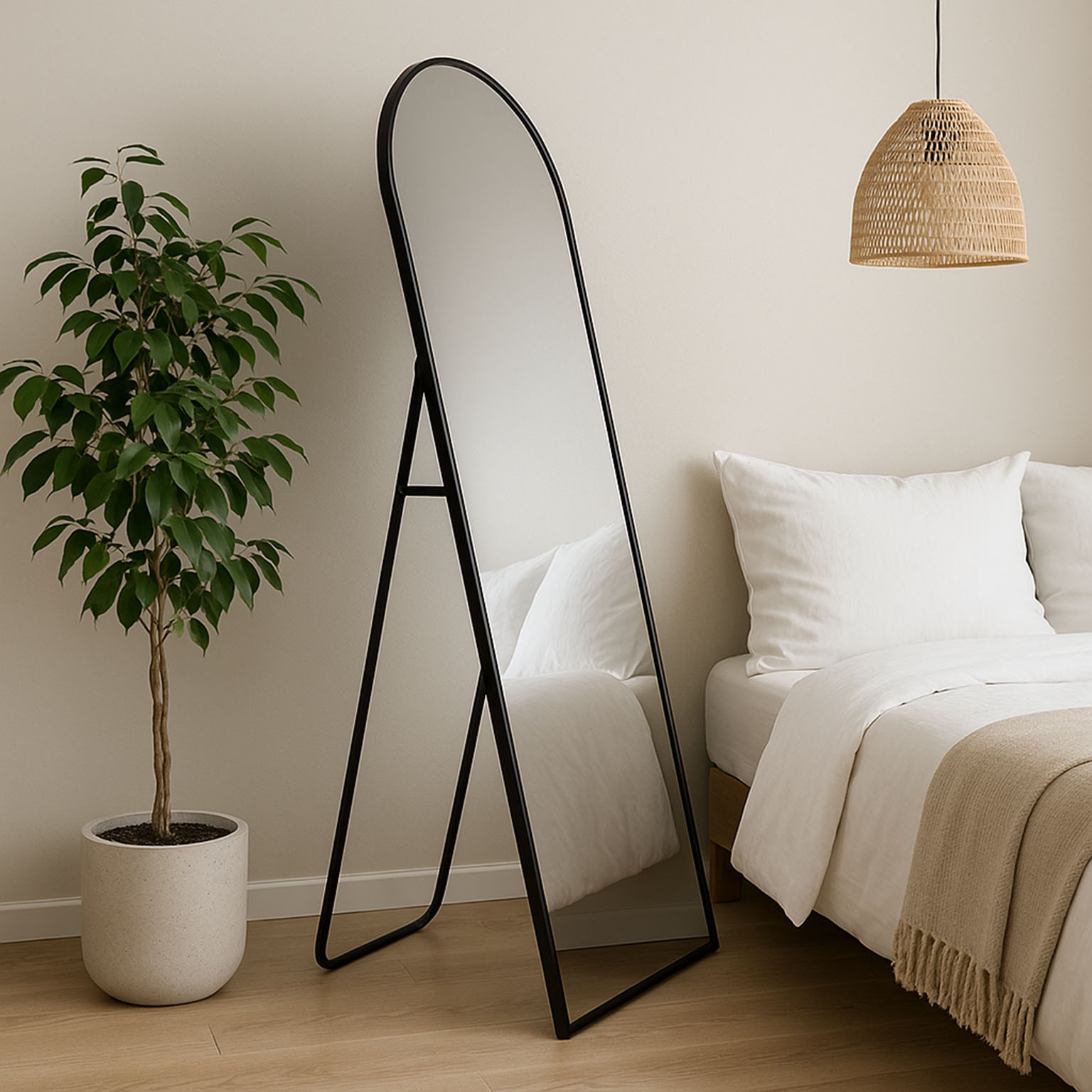 Specchio da terra nero, un elemento di design moderno che arricchisce gli spazi della casa.