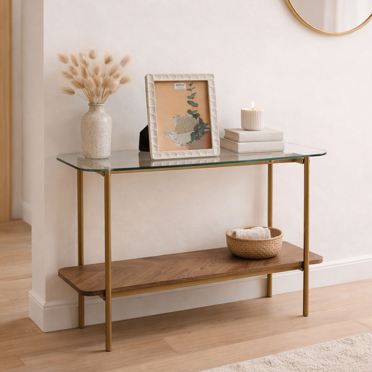 Il ripiano inferiore in legno di 15 mm aggiunge un tocco di calore, rendendola versatile per ingressi, soggiorni o corridoi.
