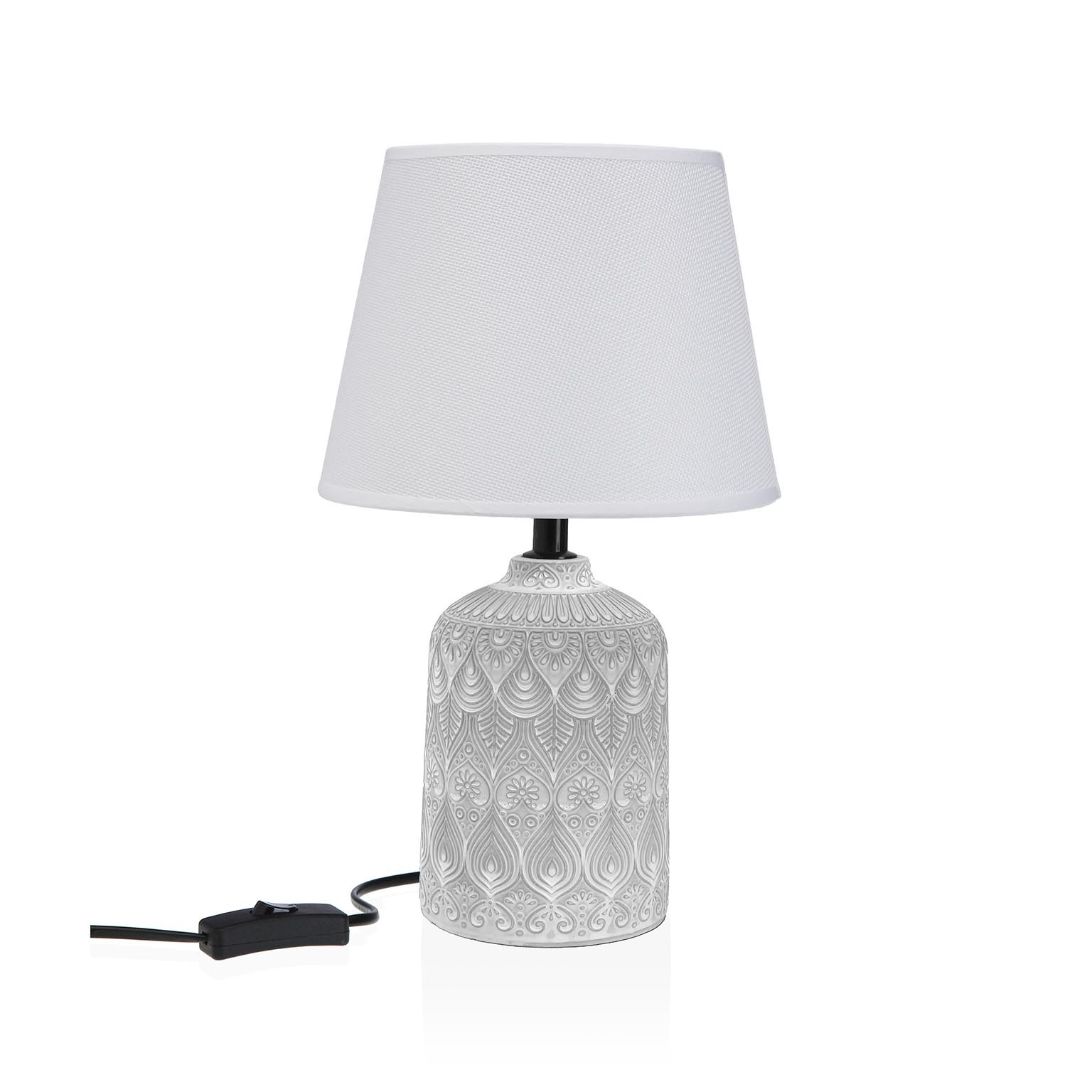Il paralume in tessuto diffonde una luce morbida, creando un'atmosfera accogliente.