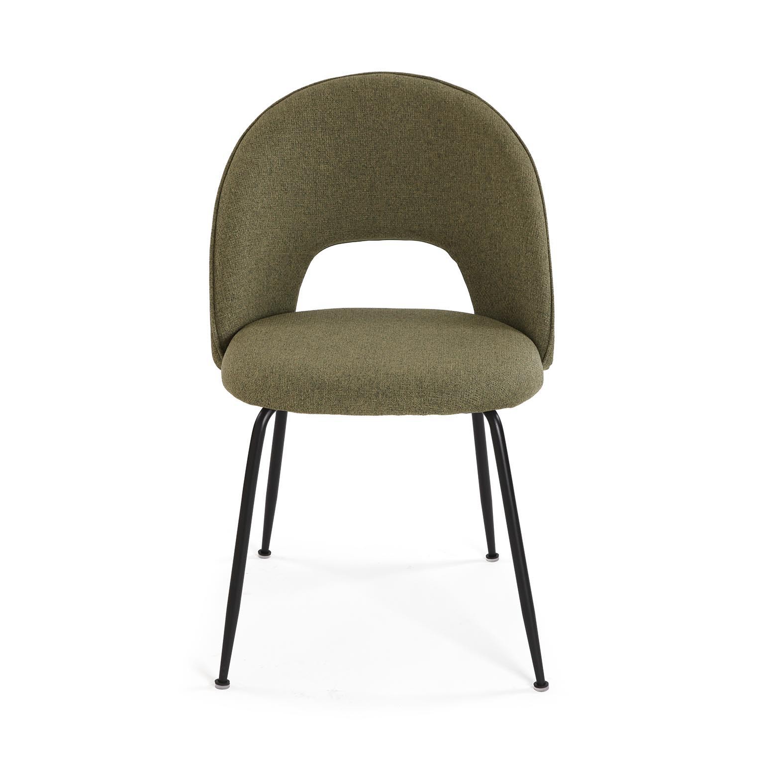 Realizzata con una struttura in metallo nero e rivestita in tessuto verde oliva, questa sedia combina comfort e design.