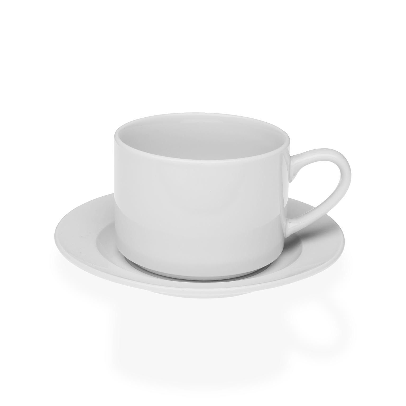 Scopri la tazza con piattino bianca da 280 ml, un elemento essenziale della linea "Set Té", progettata per il servizio di tè e caffè.
