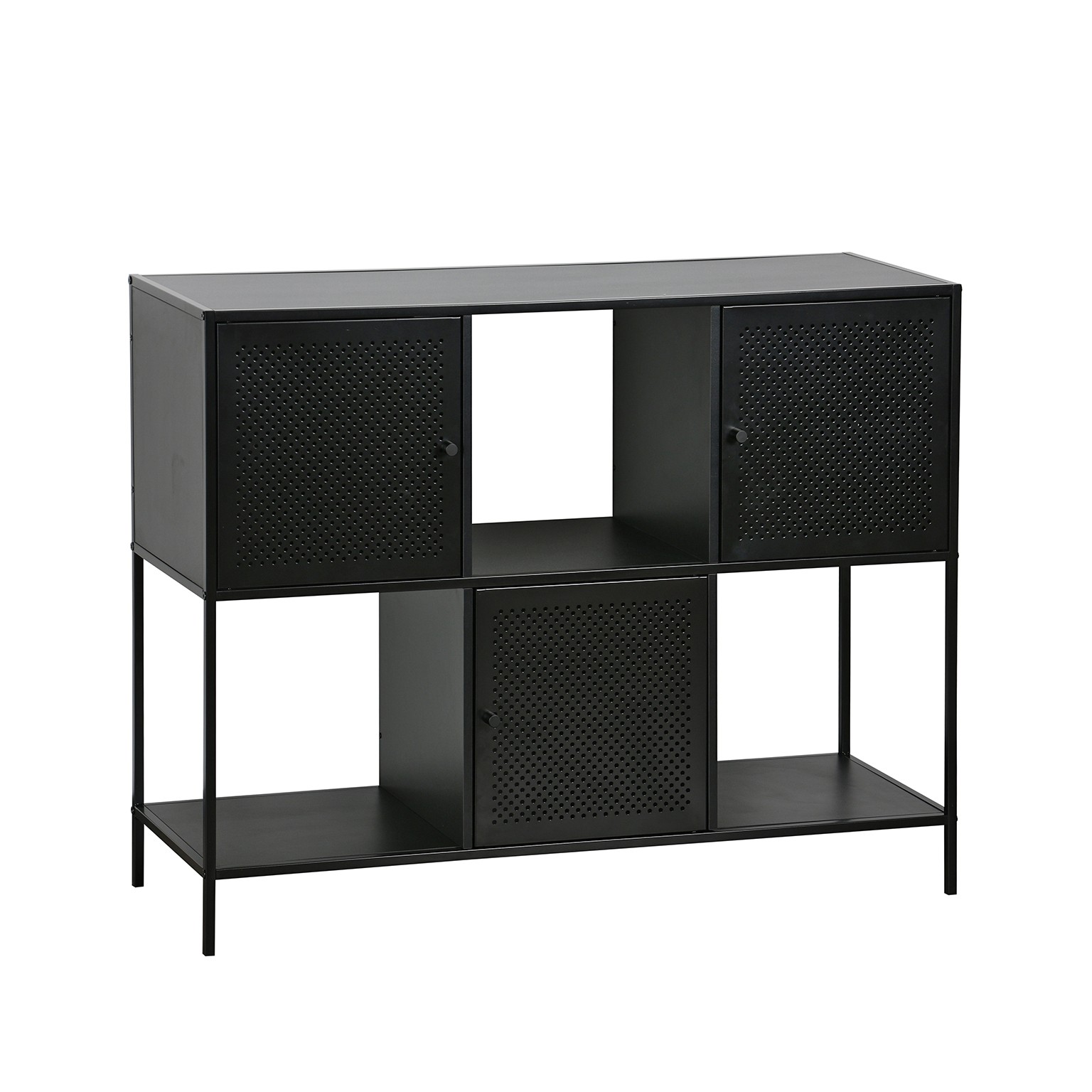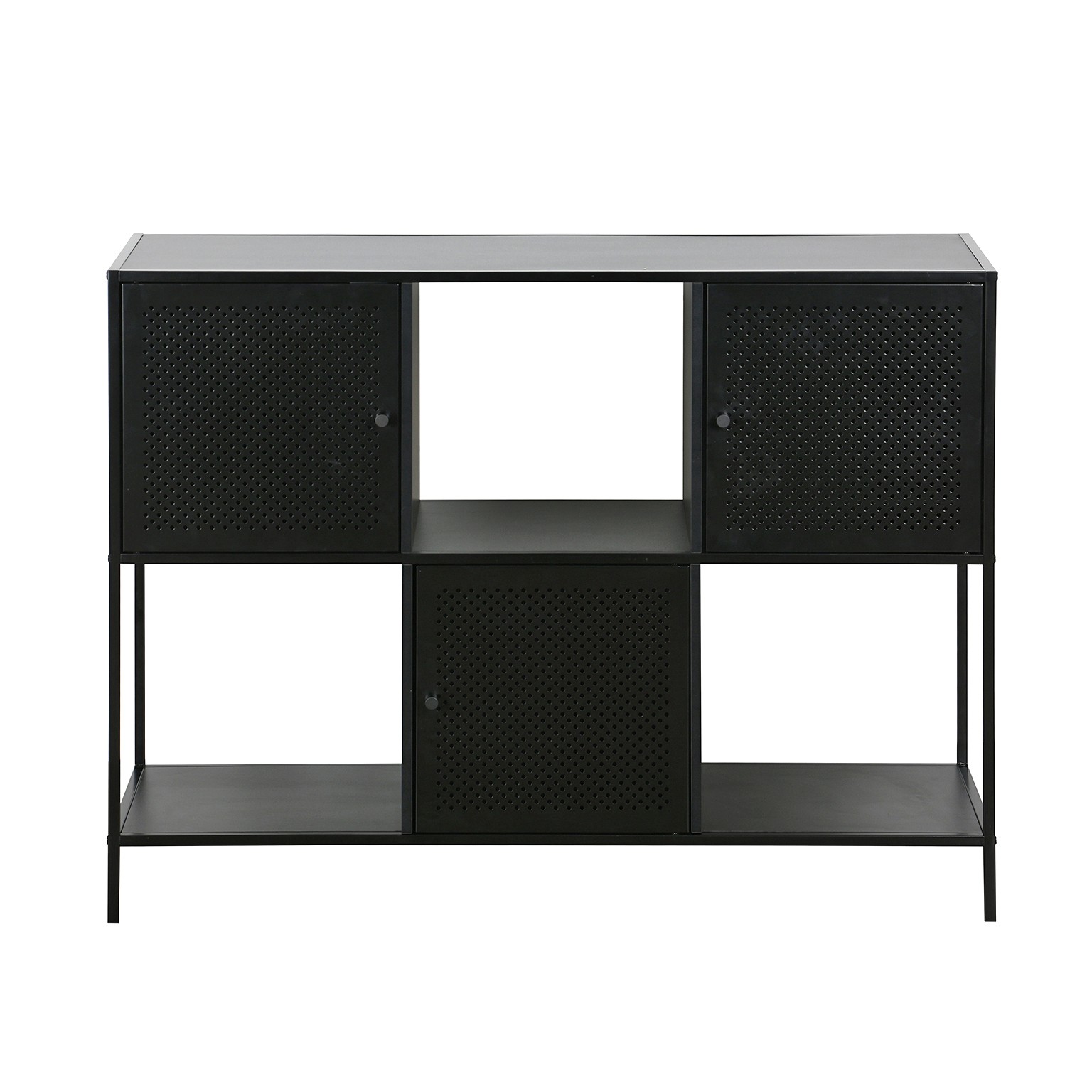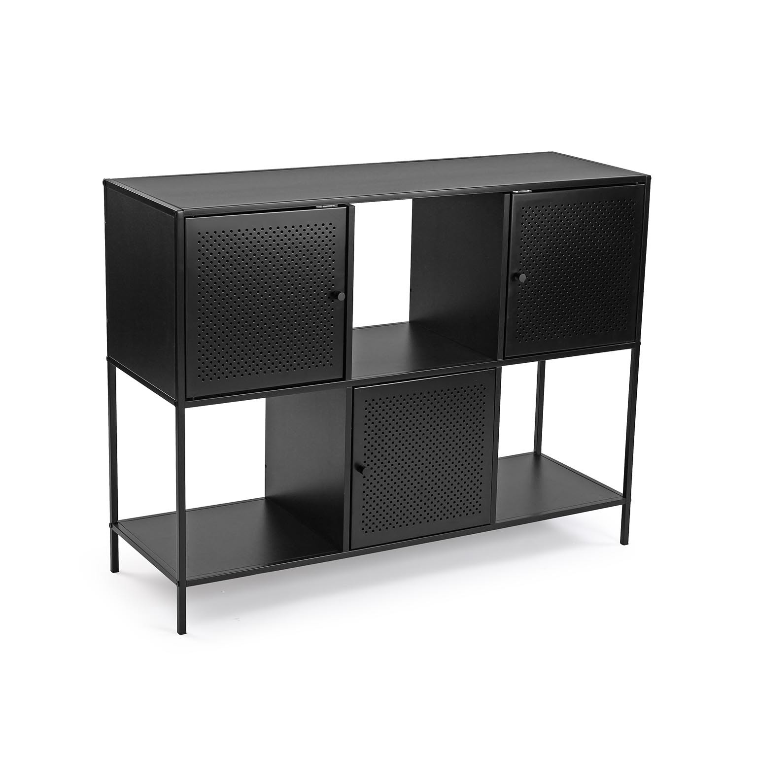 Le ante in metallo, dotate di fori per una ventilazione ottimale, offrono un'ottima soluzione per riporre oggetti, libri o decorazioni.