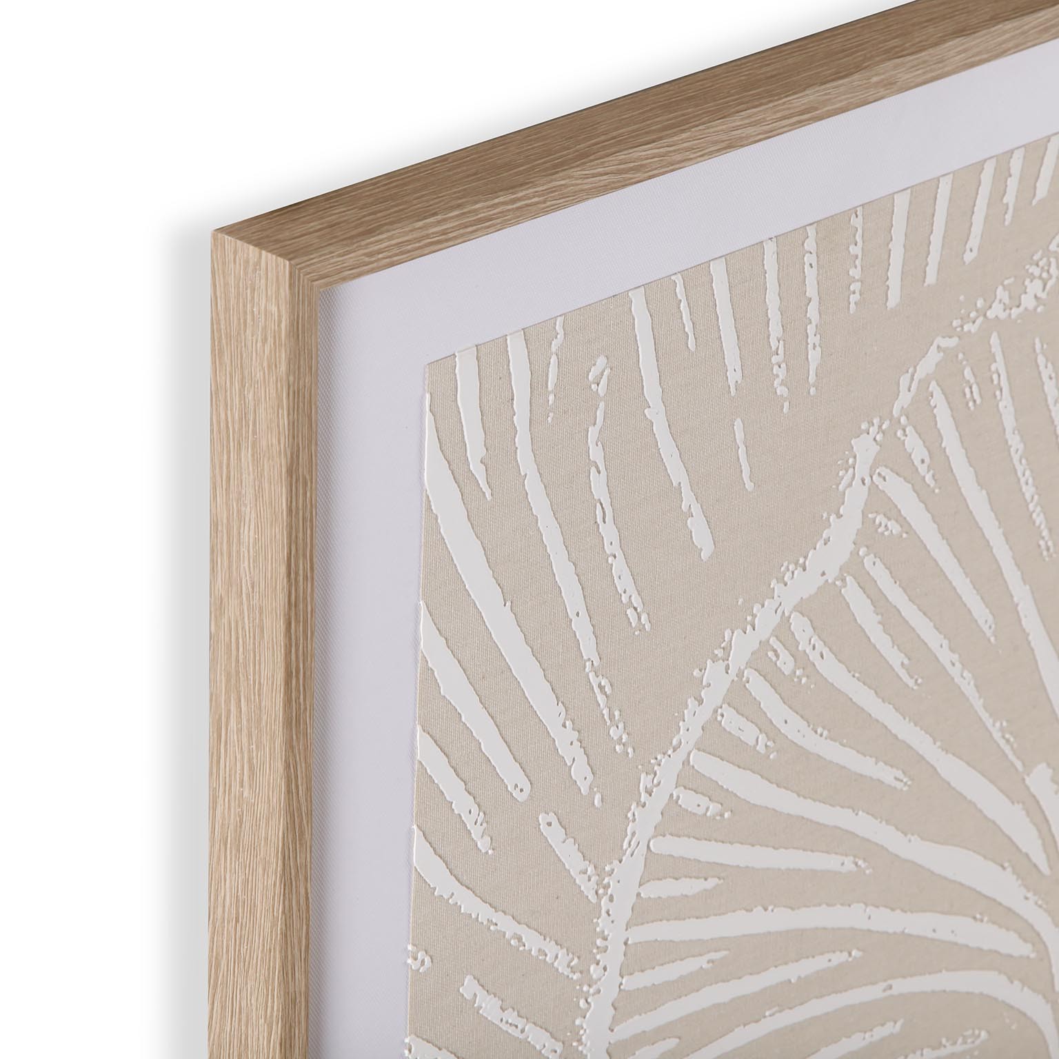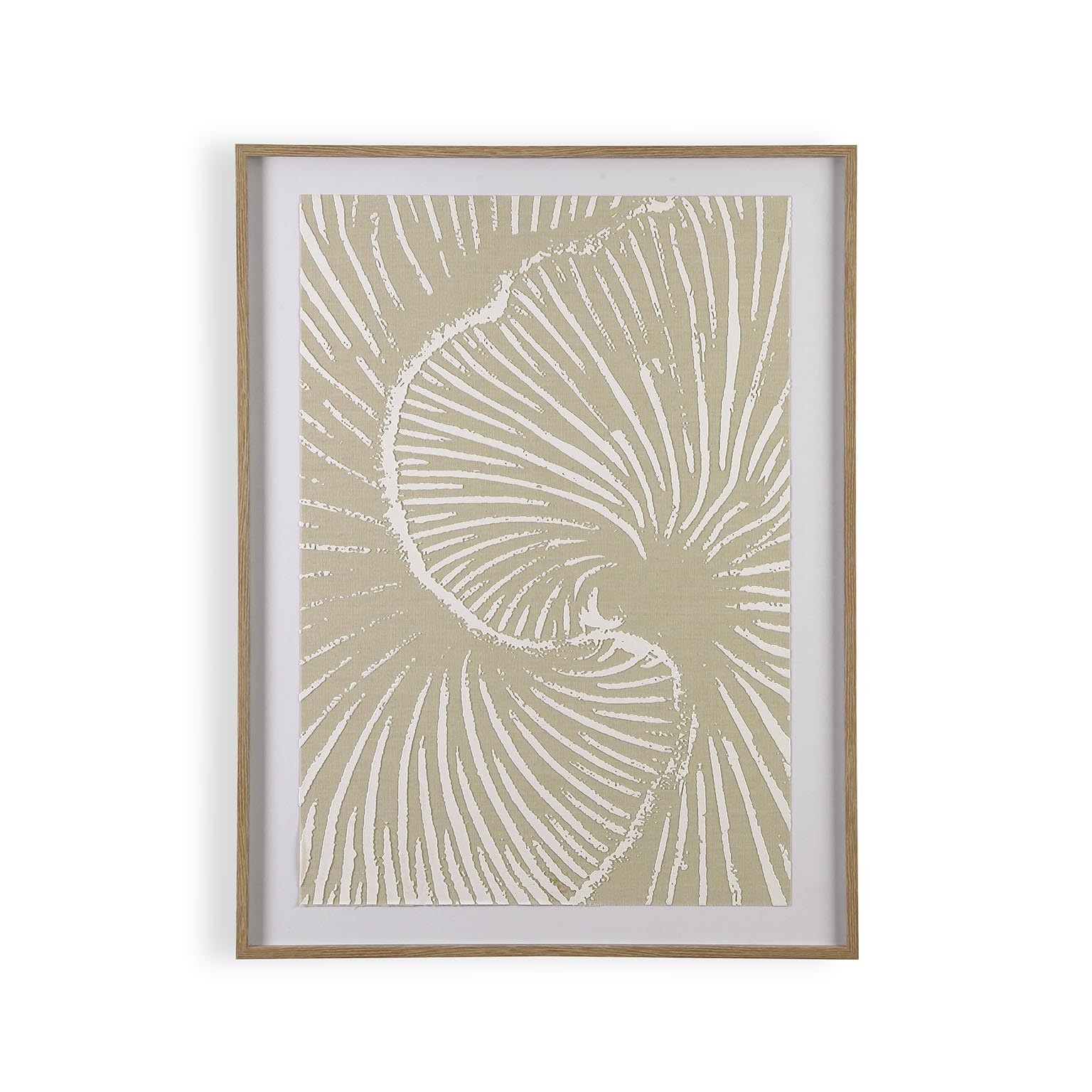 Realizzata in tela con una cornice in legno, presenta un design minimalista caratterizzato da toni neutri di beige e bianco.