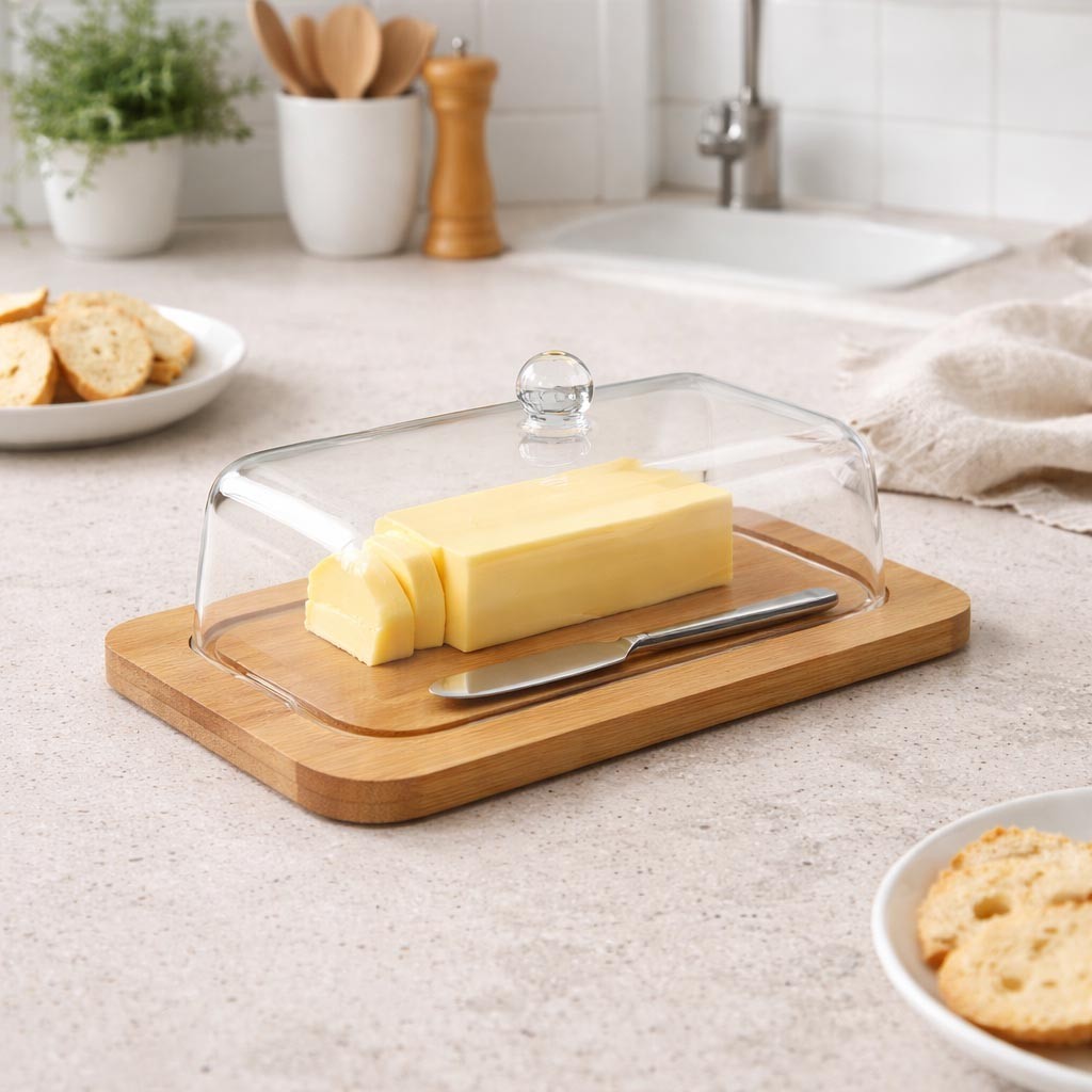 Piatto per burriera in bambù, un accessorio funzionale e decorativo per la cucina.