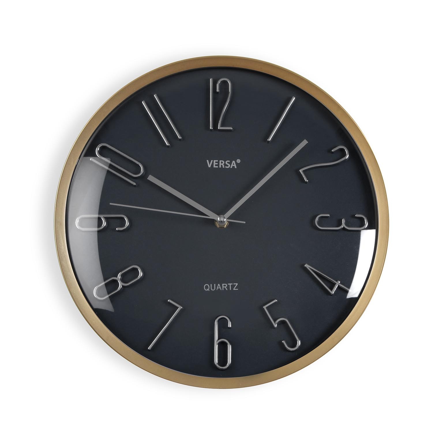 Realizzato in plastica con un elegante quadrante grigio scuro e dettagli in oro, questo orologio presenta un design moderno e minimalista che si integra facilmente in vari stili di arredamento.