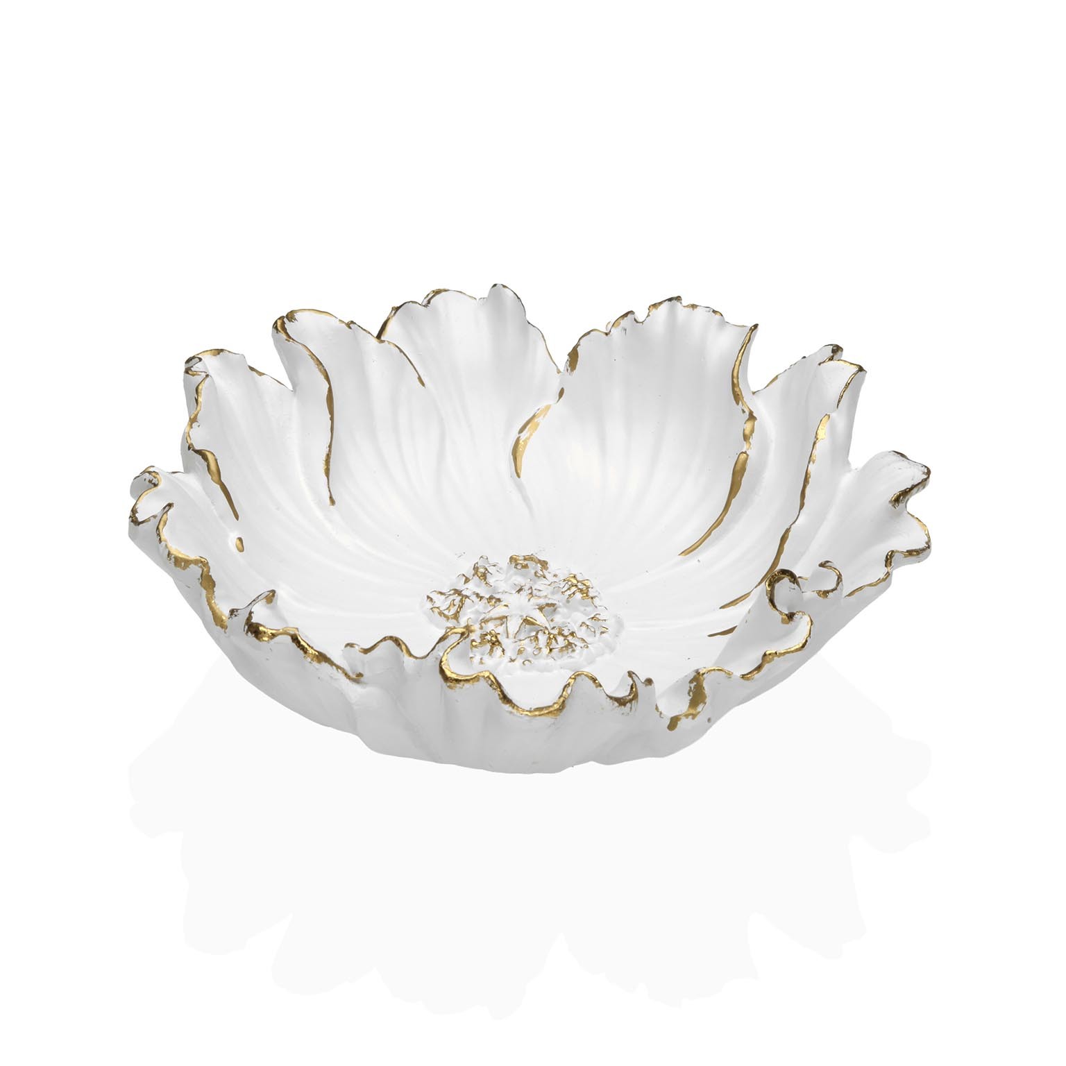 Centrotavola fiore bianco, un elegante candelabro in resina che arricchisce gli spazi con il suo design raffinato.