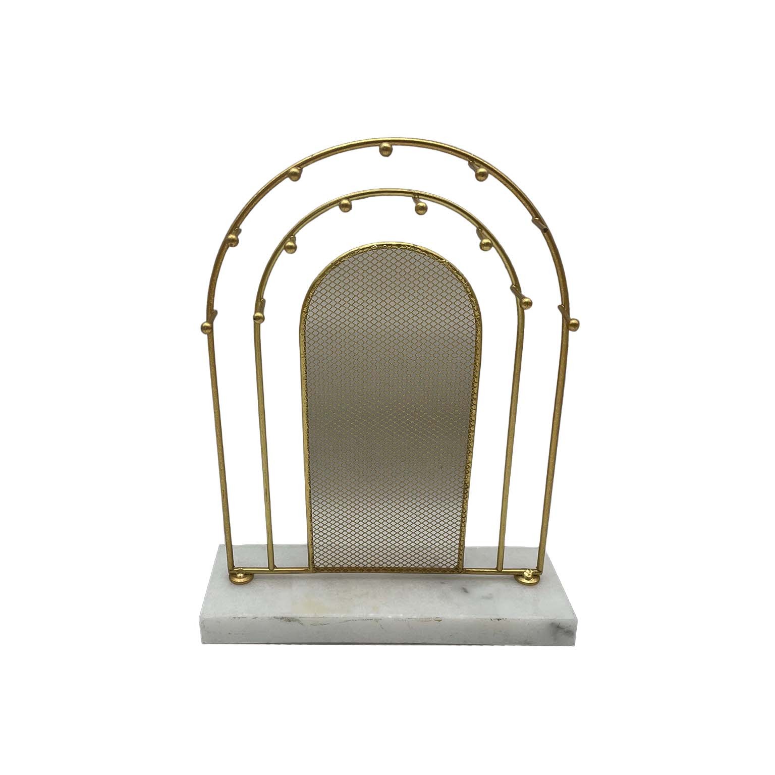 Porta gioie elegante in metallo dorato, progettato per organizzare e esporre gioielli e accessori con stile.