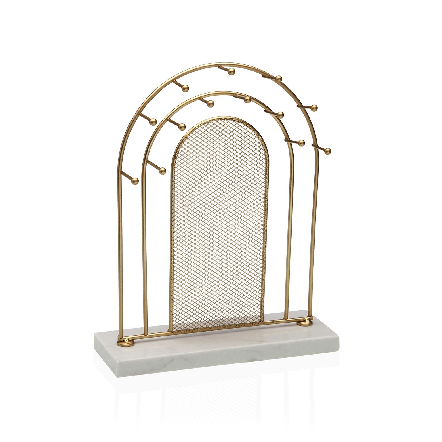 Porta gioie elegante in metallo dorato, progettato per organizzare e esporre gioielli e accessori con stile.