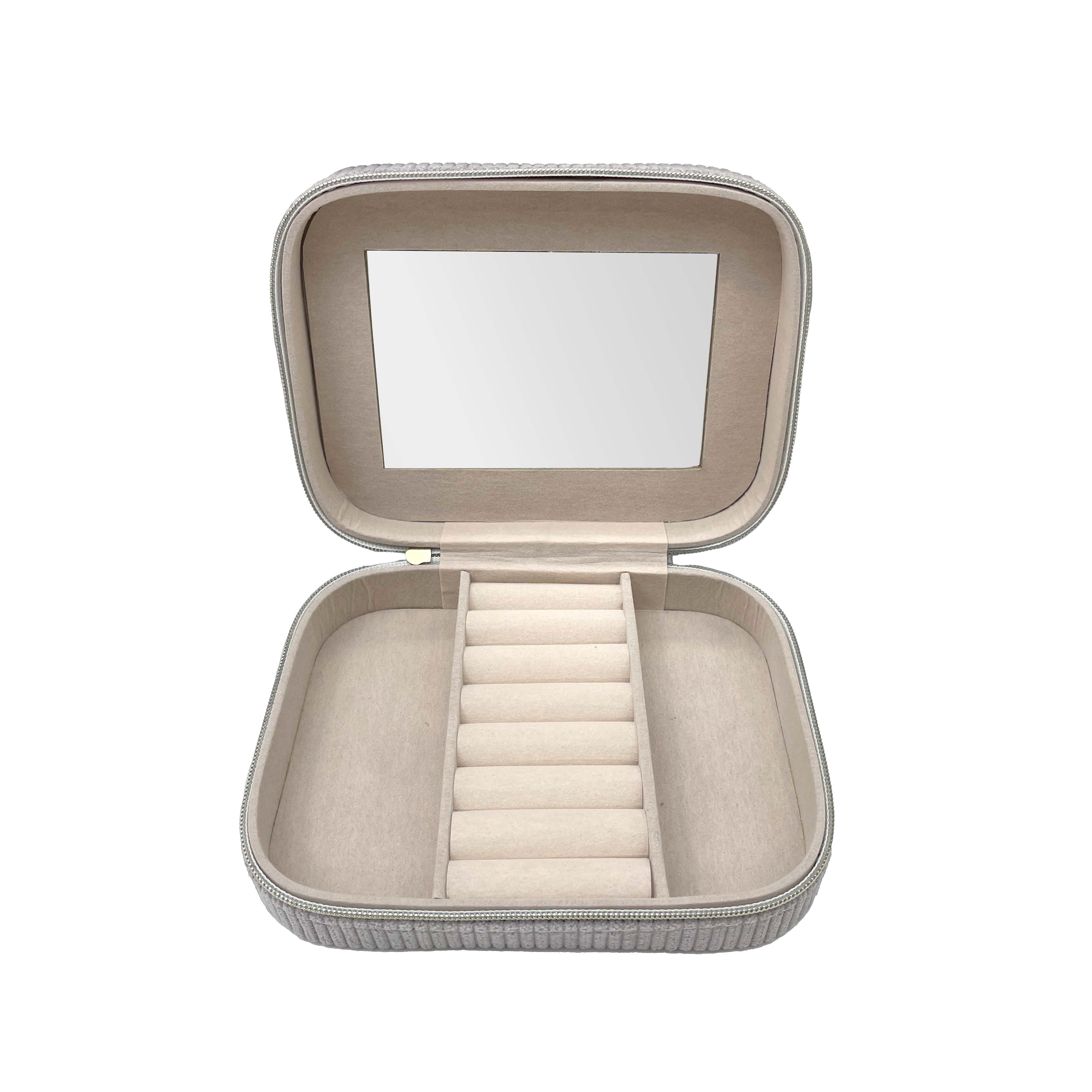 Realizzato in legno e rivestito in velluto, offre una protezione delicata per gioielli e piccoli accessori.