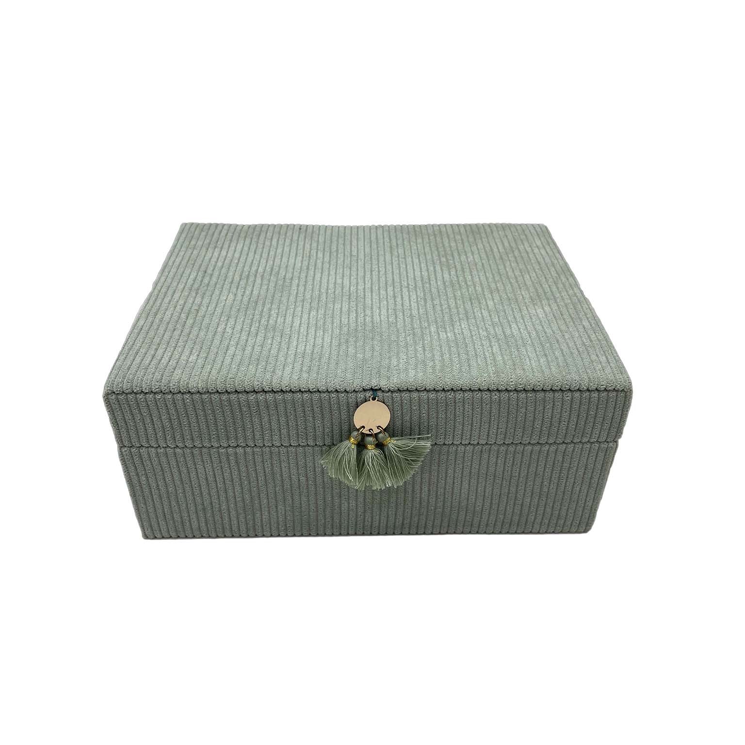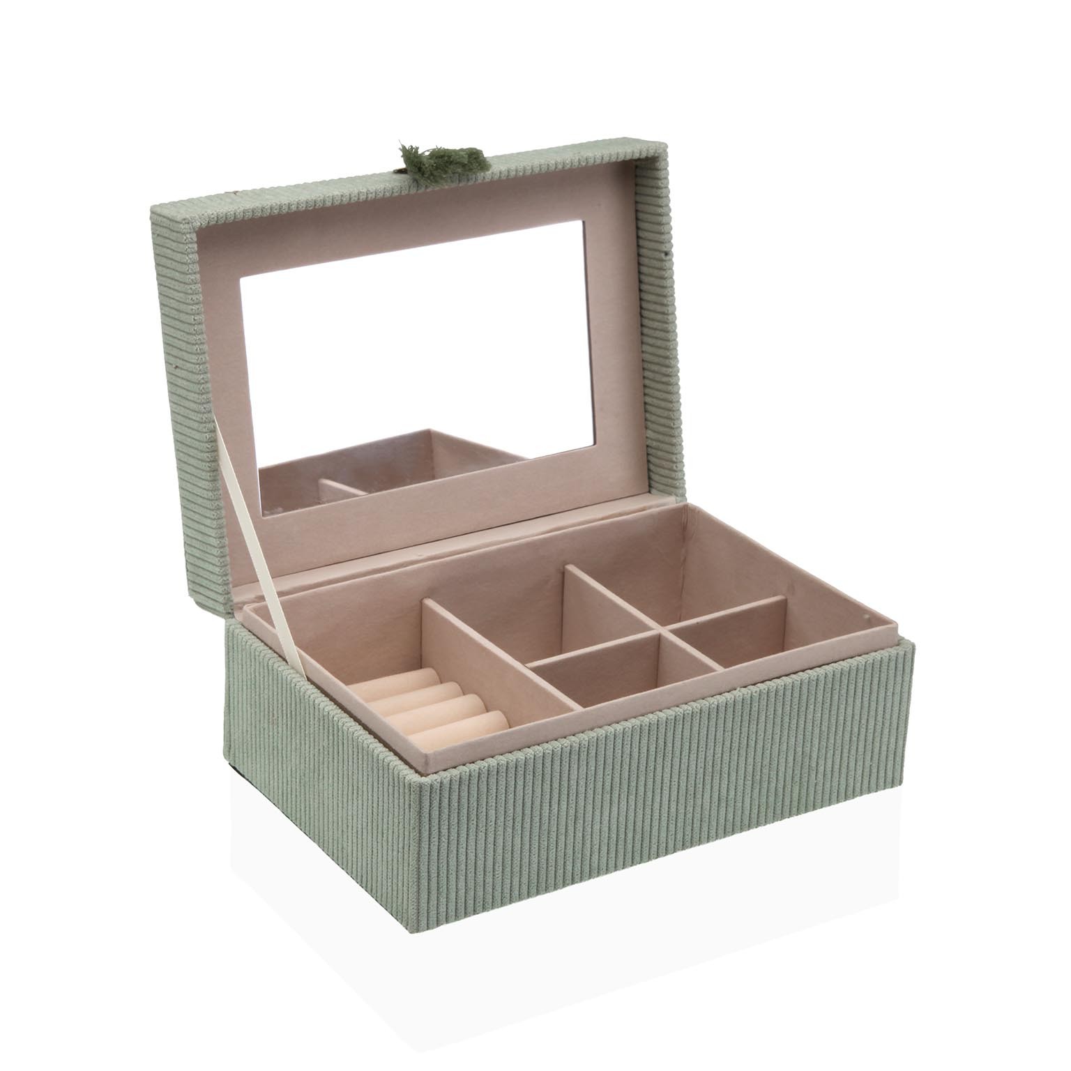 Il portagioie in velluto verde menta rappresenta un elegante accessorio per l'organizzazione di gioielli e piccoli oggetti di valore.