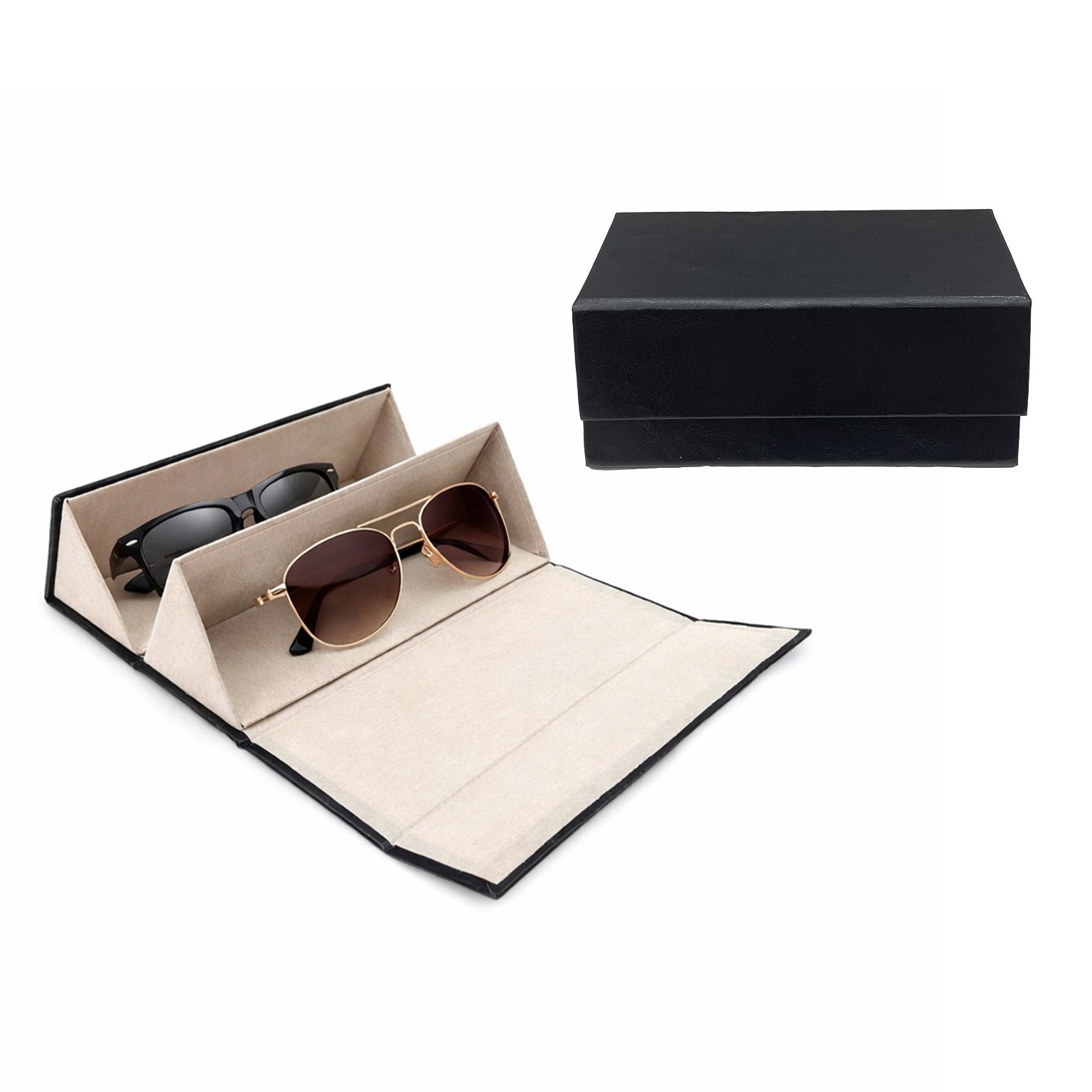 Custodia doppia per occhiali nera, realizzata in cartone e pelle sintetica, con un design minimalista che si integra armoniosamente negli spazi della casa.