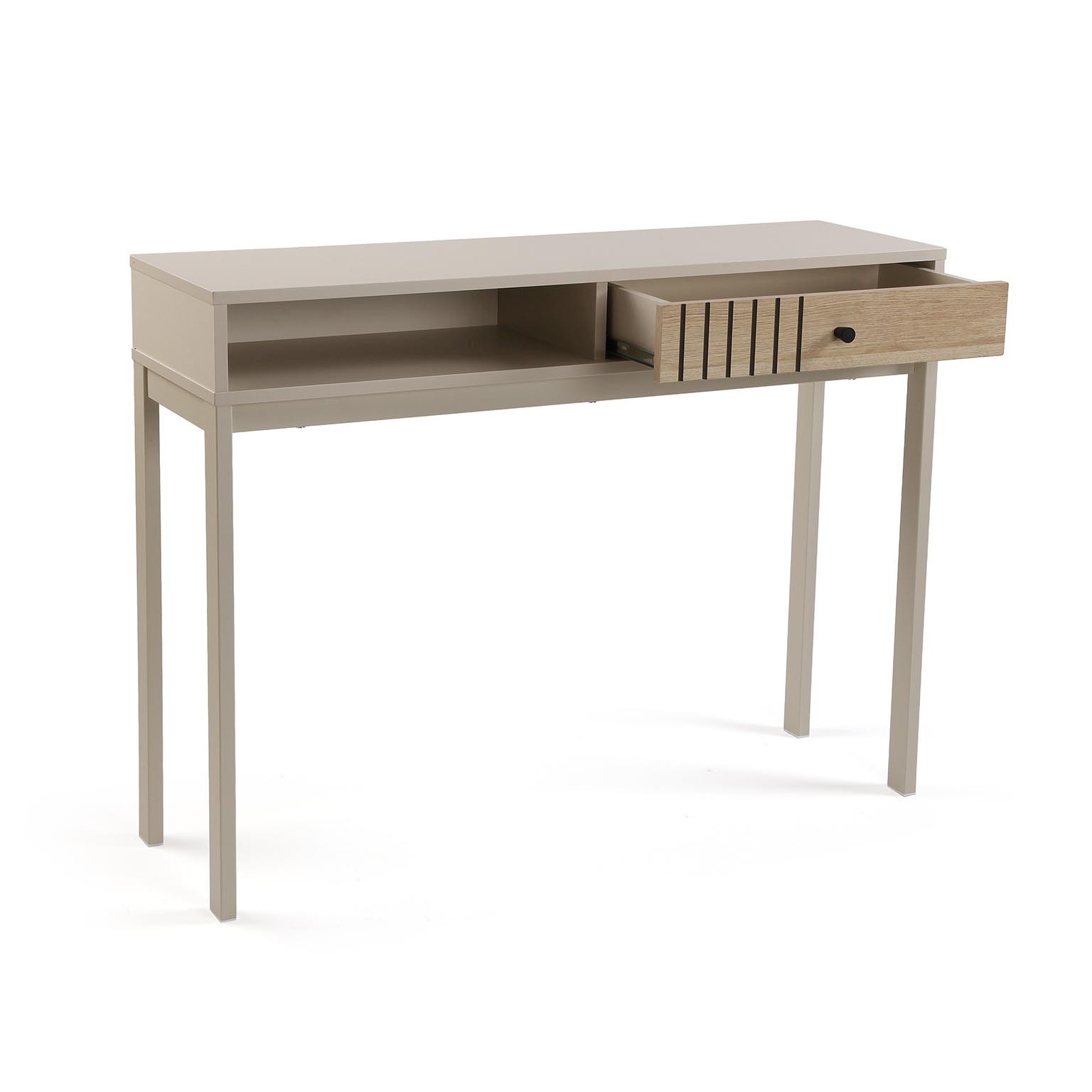 Le tonalità neutre, come beige e bianco, la rendono facilmente abbinabile a mobili contemporanei, mentre la sua versatilità consente di utilizzarla anche come scrivania leggera o tavolino in altri ambienti.