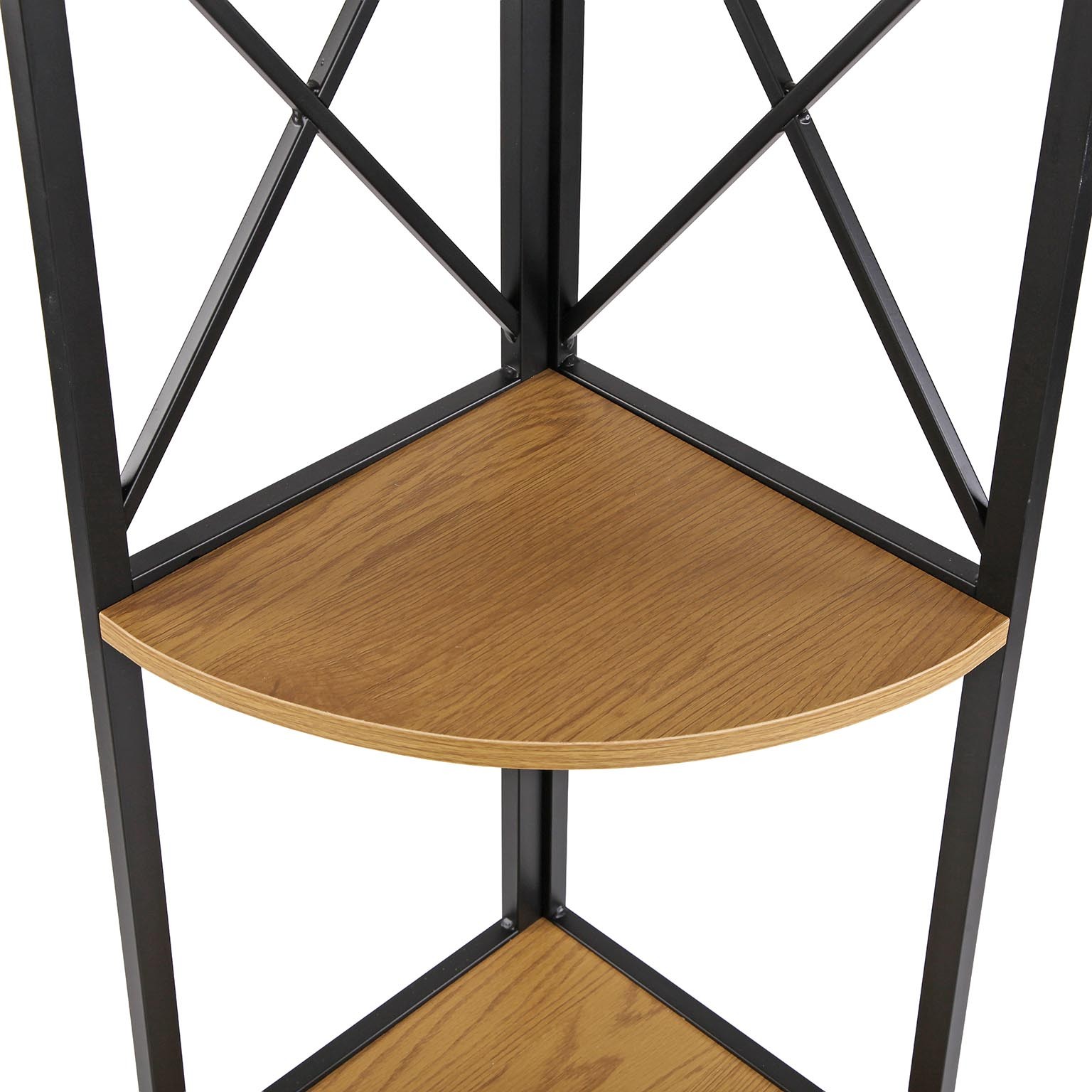 Scaffale angolare a 4 ripiani, progettato per ottimizzare gli spazi interni.