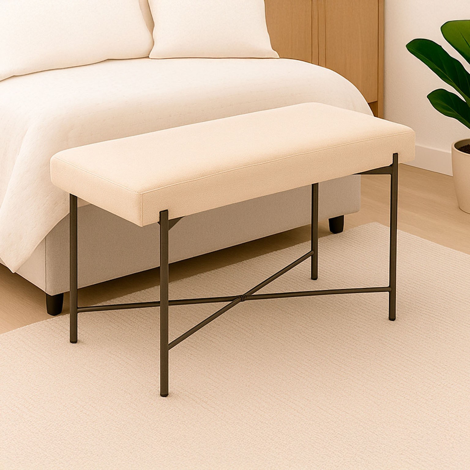 Realizzata con una robusta struttura in acciaio e rivestita in morbido tessuto beige, si distingue per il suo design moderno e linee pulite.