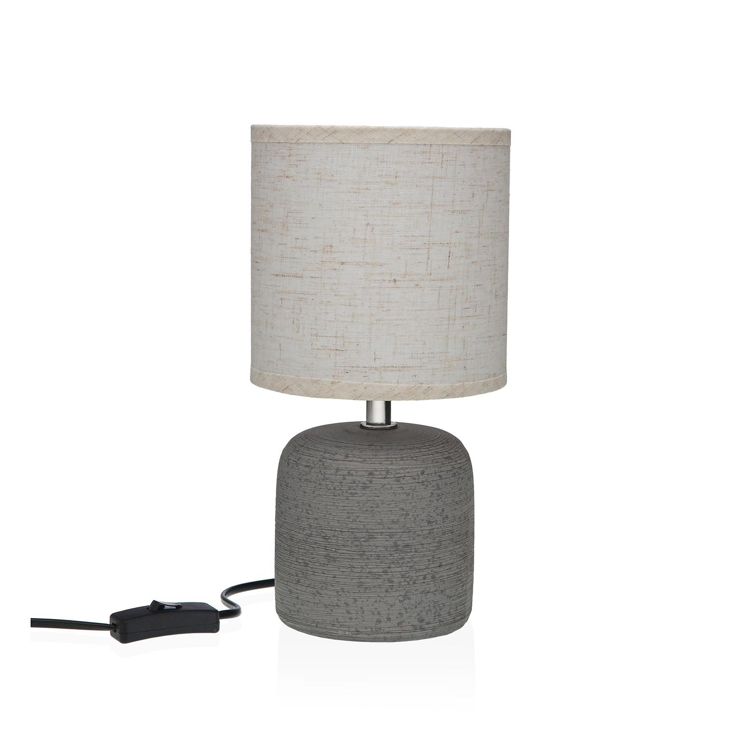La lampada da tavolo Brave in grigio scuro è un elemento di design moderno, realizzata con una base in ceramica e un elegante paralume in tessuto.