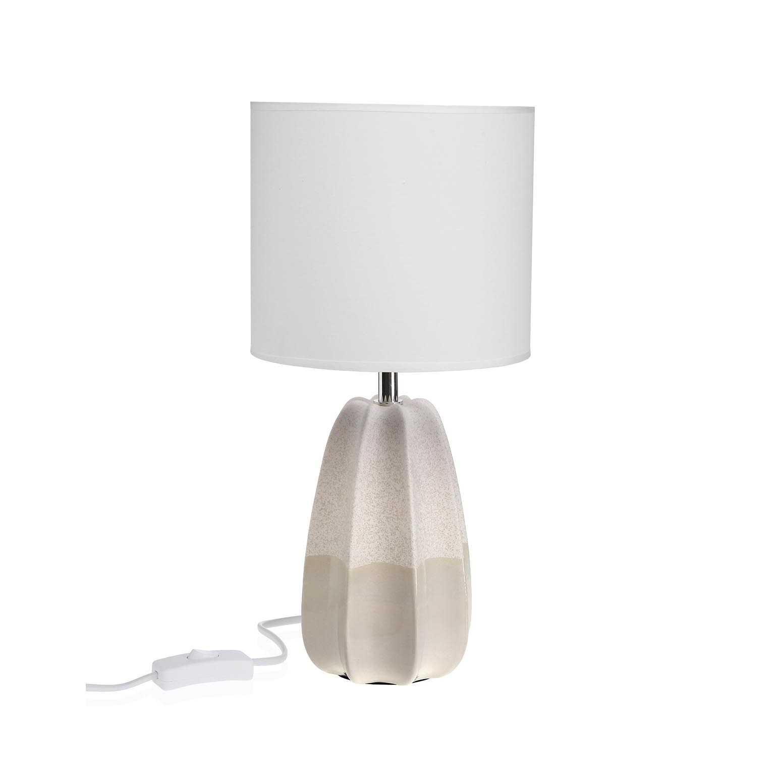 La lampada da tavolo Hera unisce eleganza e funzionalità, grazie alla sua base in ceramica e al paralume in tessuto.
