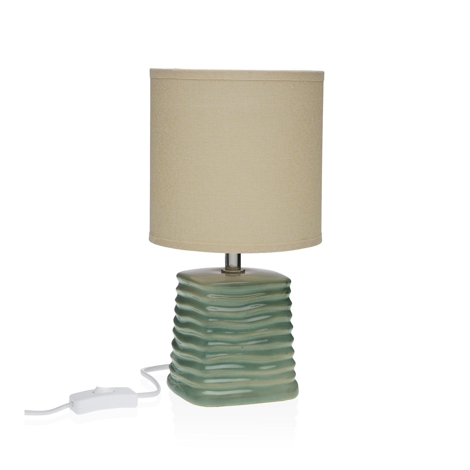 La lampada da tavolo Lyla verde è un elemento di design moderno, realizzata con una base in ceramica e un paralume in tessuto.