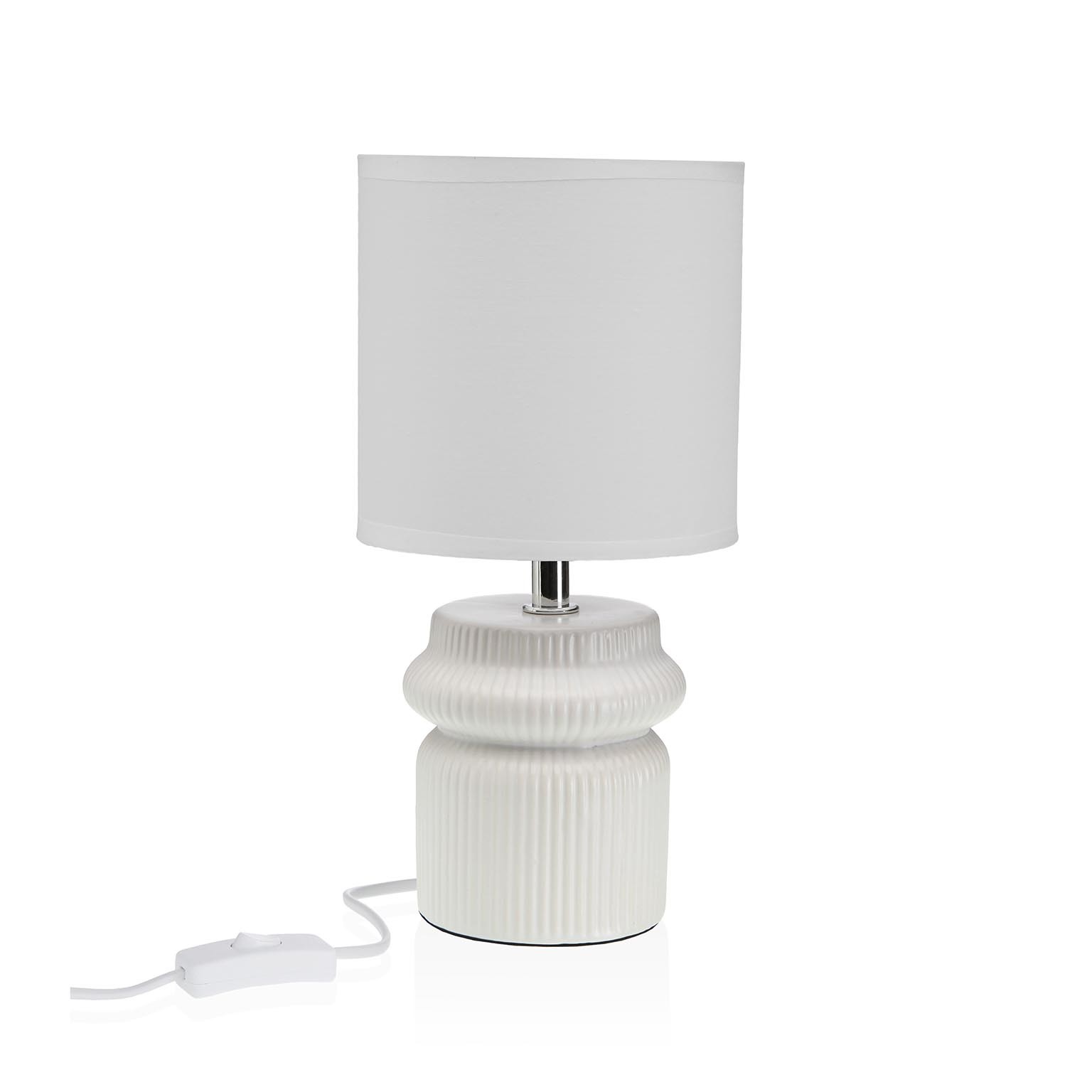 Realizzata in ceramica con una base robusta e un paralume in tessuto, questa lampada misura 27 cm di altezza e 10 cm di larghezza, rendendola ideale per soggiorni, camere da letto e studi.