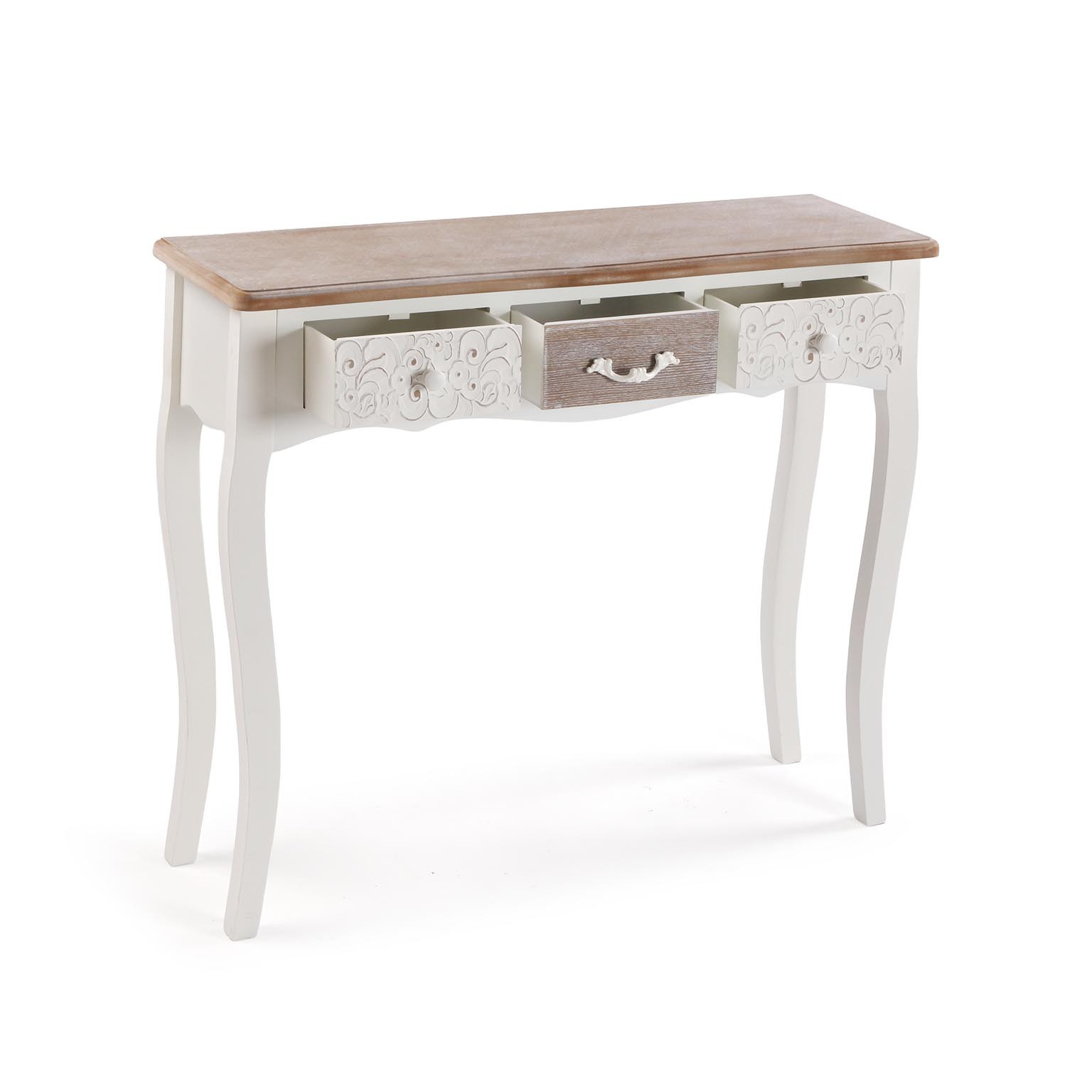 La consolle rustica bianca con 3 cassetti è un complemento d'arredo versatile e funzionale, ideale per ingressi e corridoi.