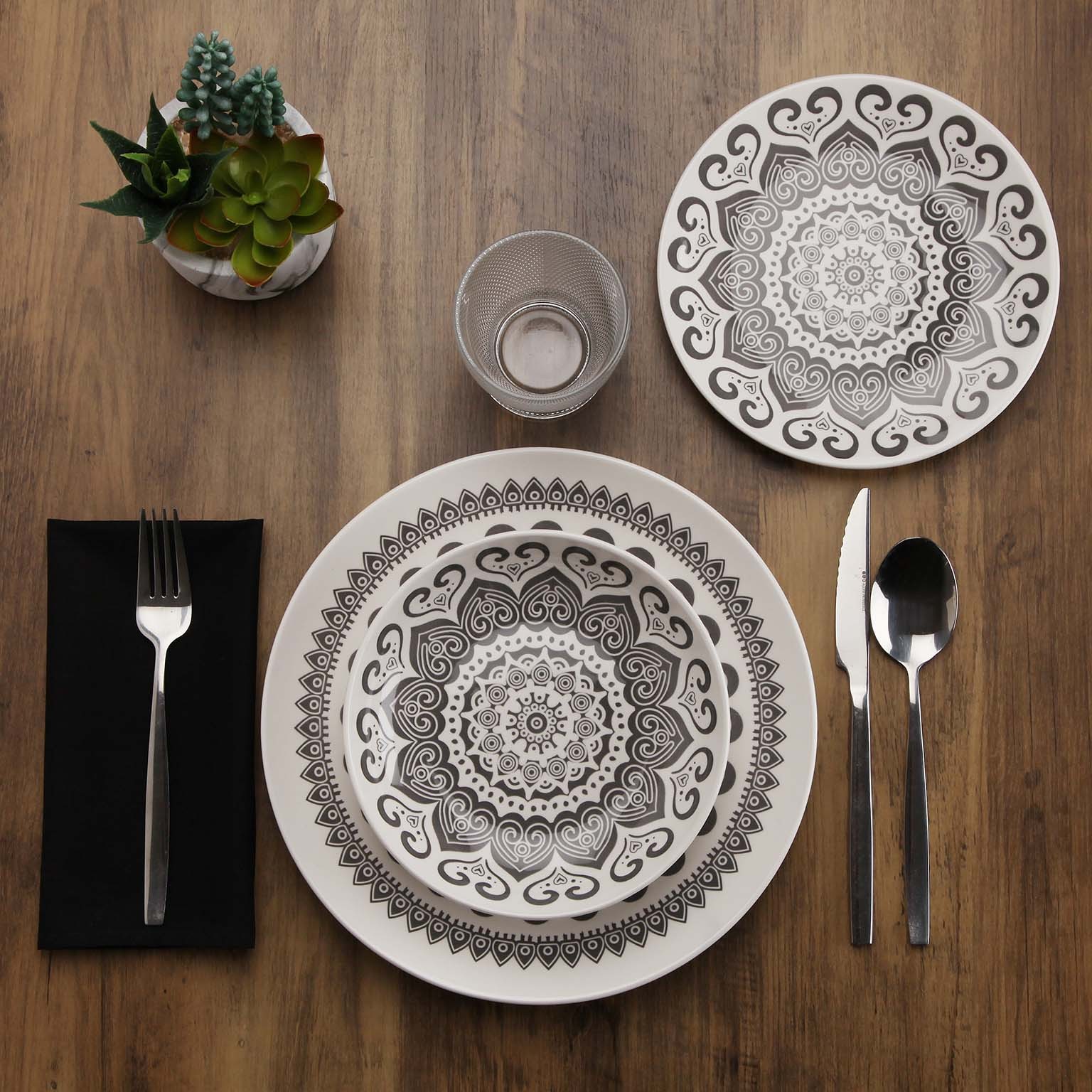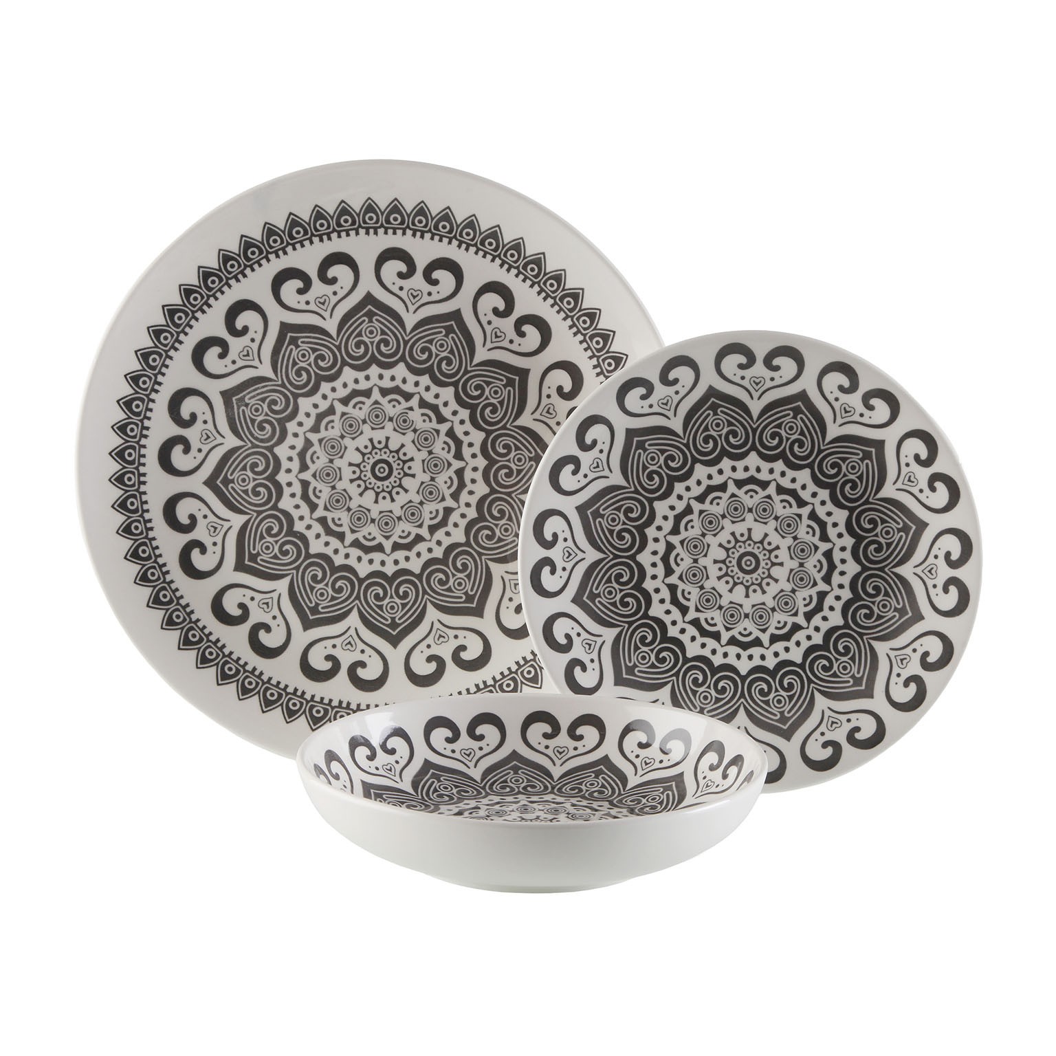 Include 6 piatti piani da 26,5 cm, 6 piatti fondi da 20 cm e 6 piatti dessert da 19 cm, perfetti per ogni occasione, dalle cene formali ai pranzi quotidiani.