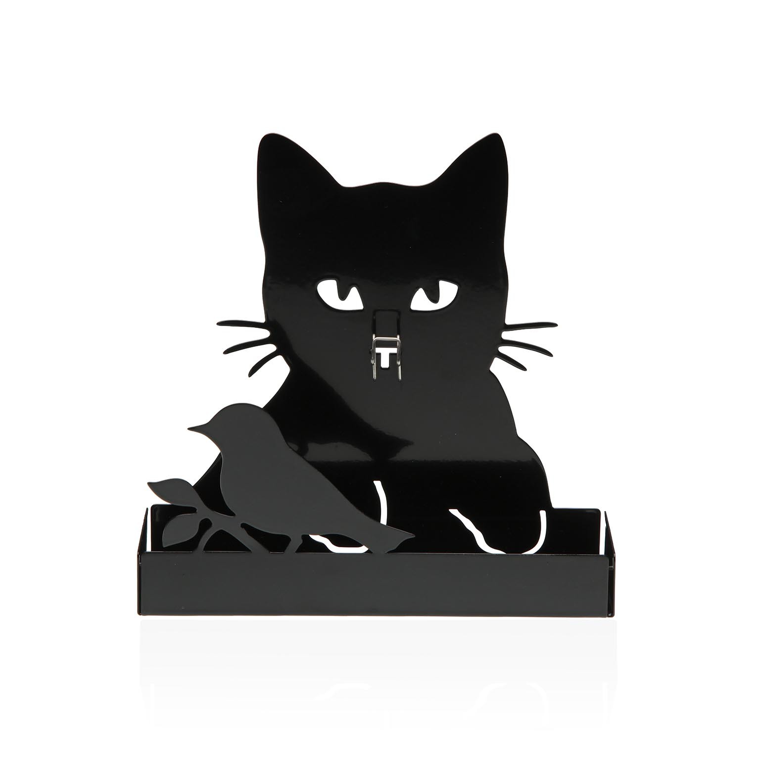 La sua forma a gatto e il colore nero lo rendono un elemento distintivo, ideale da collocare su tavoli, mensole o superfici piane.