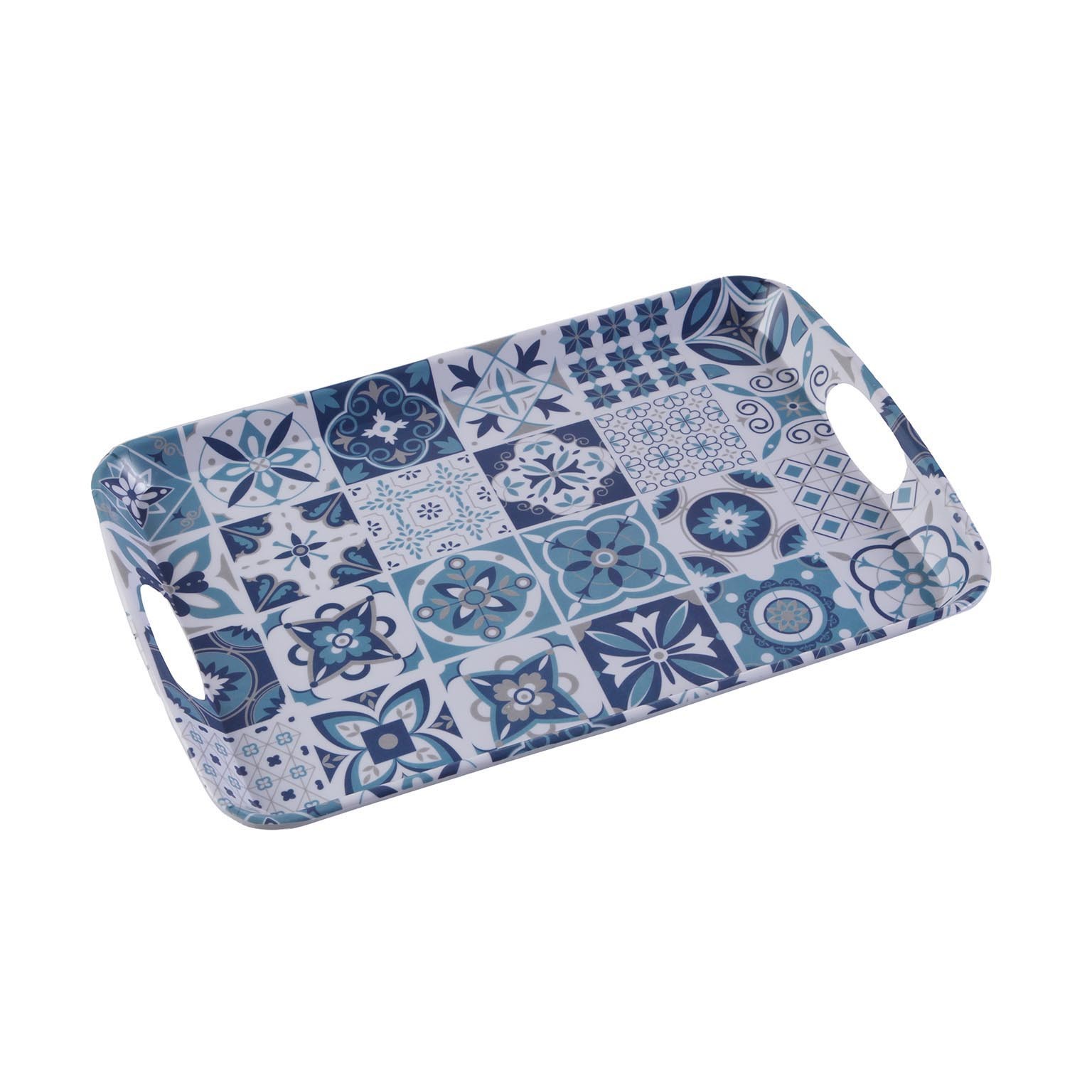 Con dimensioni di 42 cm di lunghezza, 27,4 cm di larghezza e 2,3 cm di altezza, presenta tonalità di blu e azzurro arricchite da motivi geometrici e floreali, evocando uno stile etnico e mediterraneo.