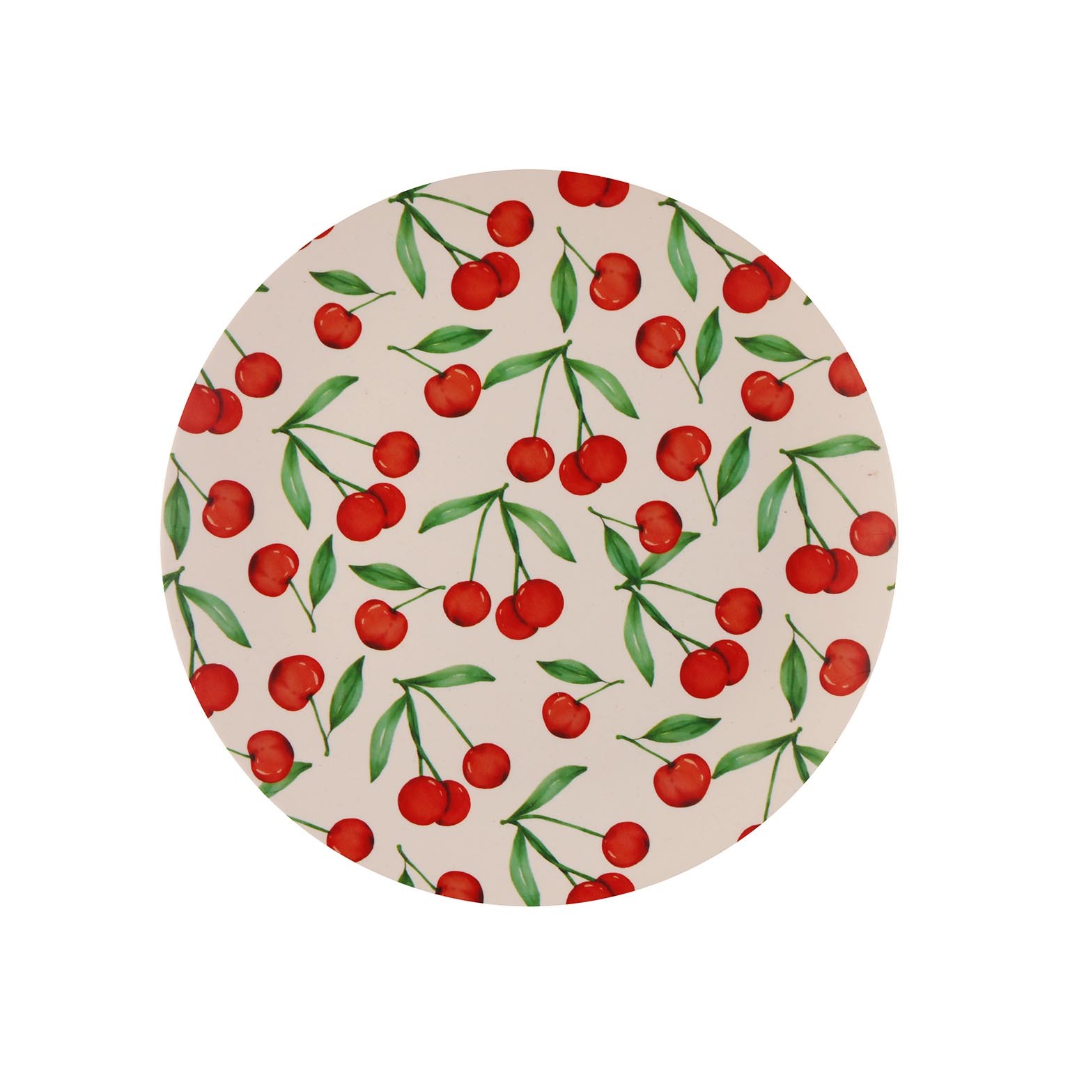 Il piatto tondo ciliegie da 25 cm è un accessorio decorativo versatile, realizzato in polipropilene.
