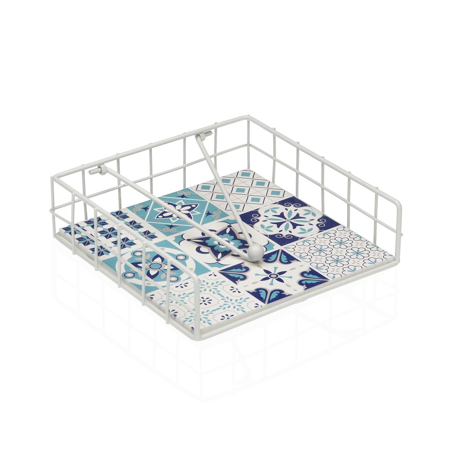 Il portatovaglioli Azurita è un accessorio funzionale e decorativo per la cucina, realizzato in ferro con una superficie in legno MDF.