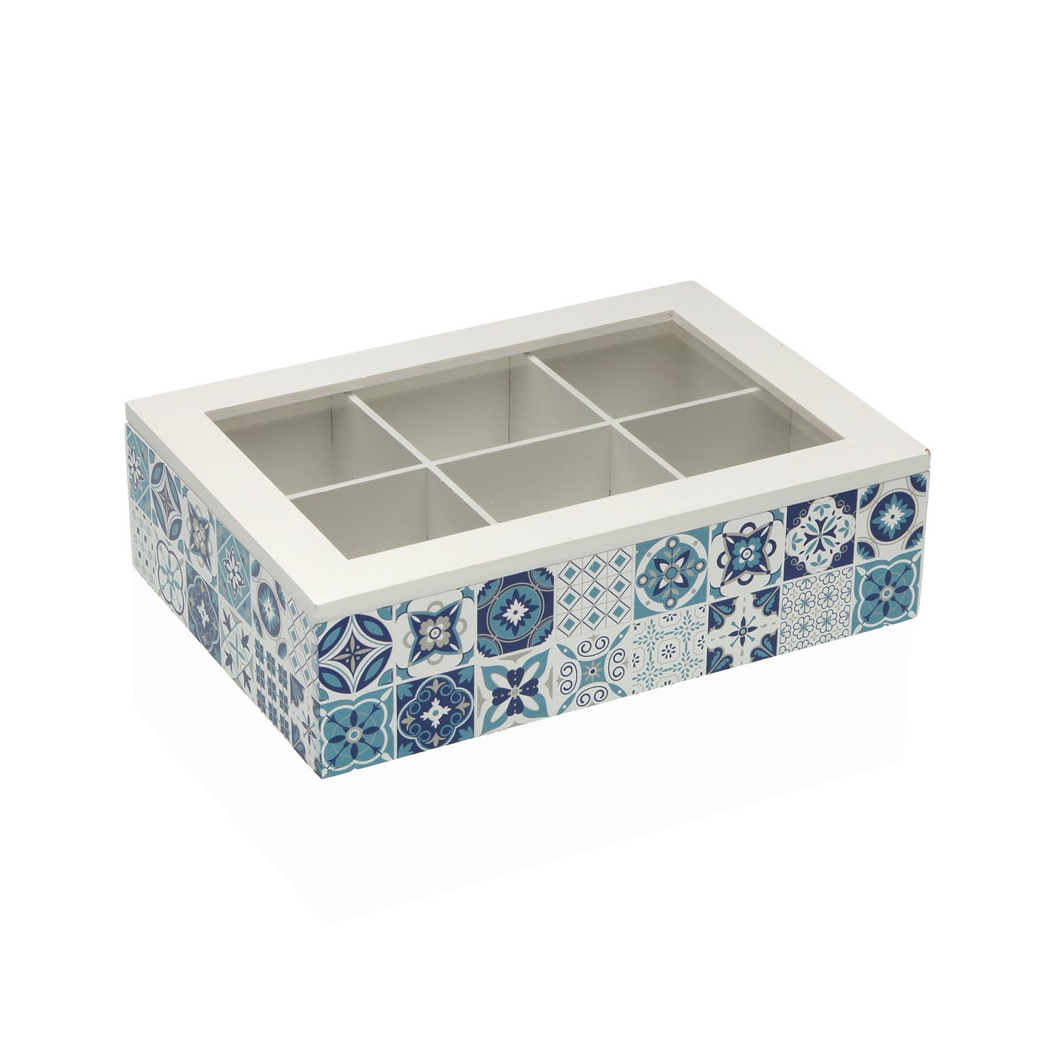 La scatola da tè Azurita a 6 scomparti è un elegante accessorio per la decorazione e l'organizzazione degli spazi domestici.