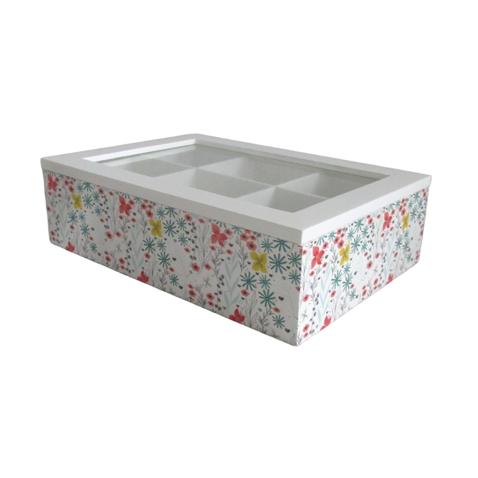 Scatola da tè "Cherries" con 6 scomparti, realizzata in legno e cristallo, offre un elegante sistema di organizzazione per tè e infusi.