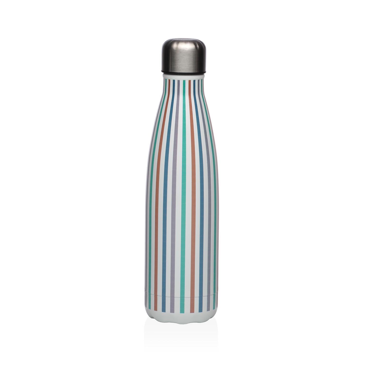 La bottiglia in acciaio inox a righe rappresenta un accessorio funzionale e dal design moderno, ideale per la cucina e per l'uso quotidiano.
