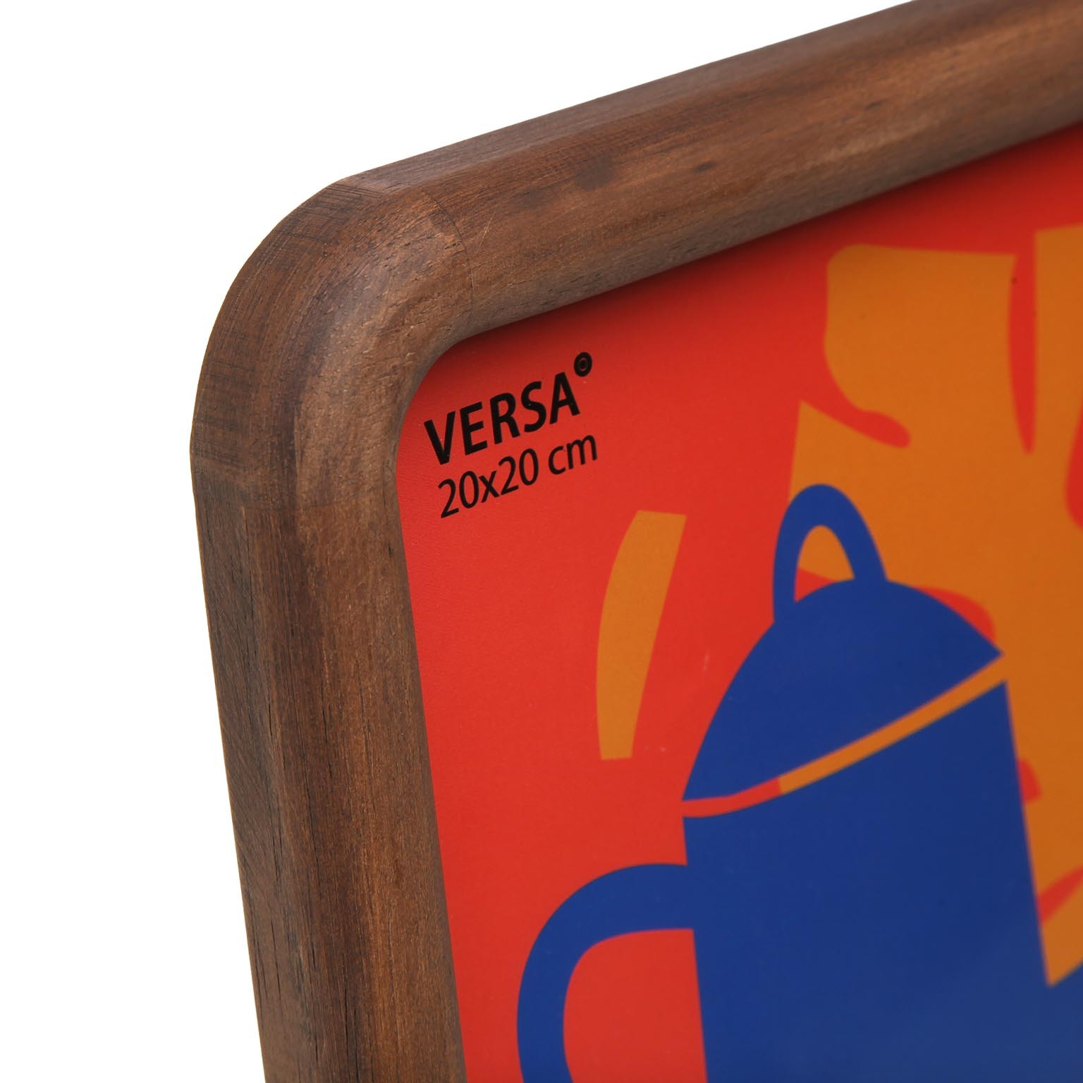 Realizzata in legno di mango, presenta un colore naturale che si sposa armoniosamente con il fondo rosso e le figure stilizzate in blu.