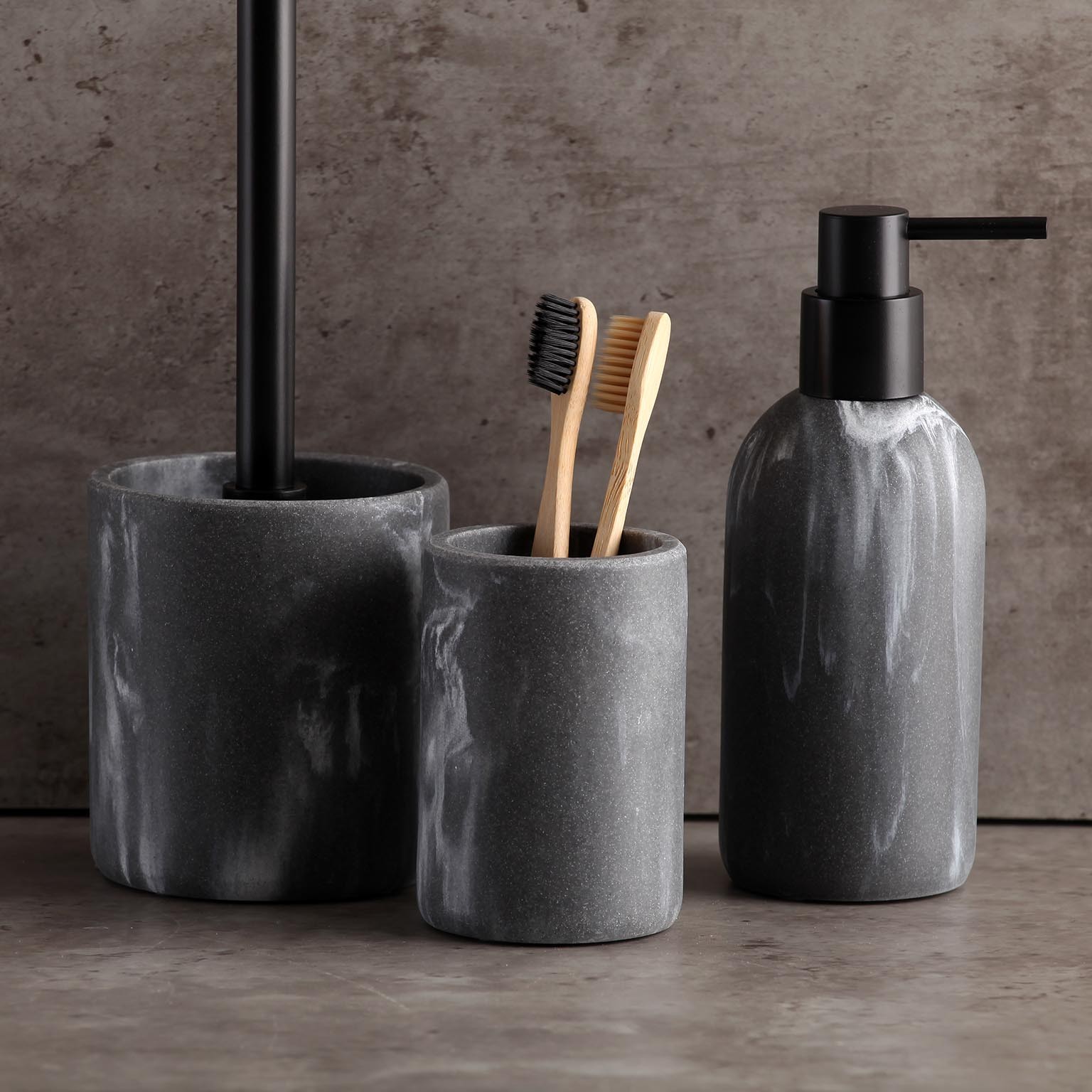 Completa il tuo set di accessori da bagno in resina per un look coordinato e sofisticato.