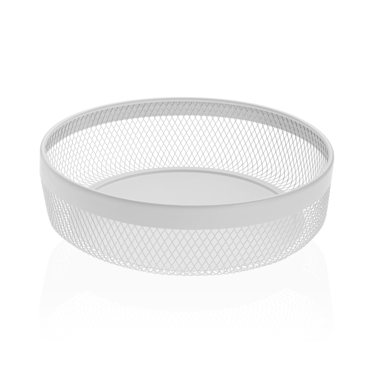 Fruttiera rete bianco in ferro, ideale per la presentazione e la conservazione di frutta e altri alimenti.