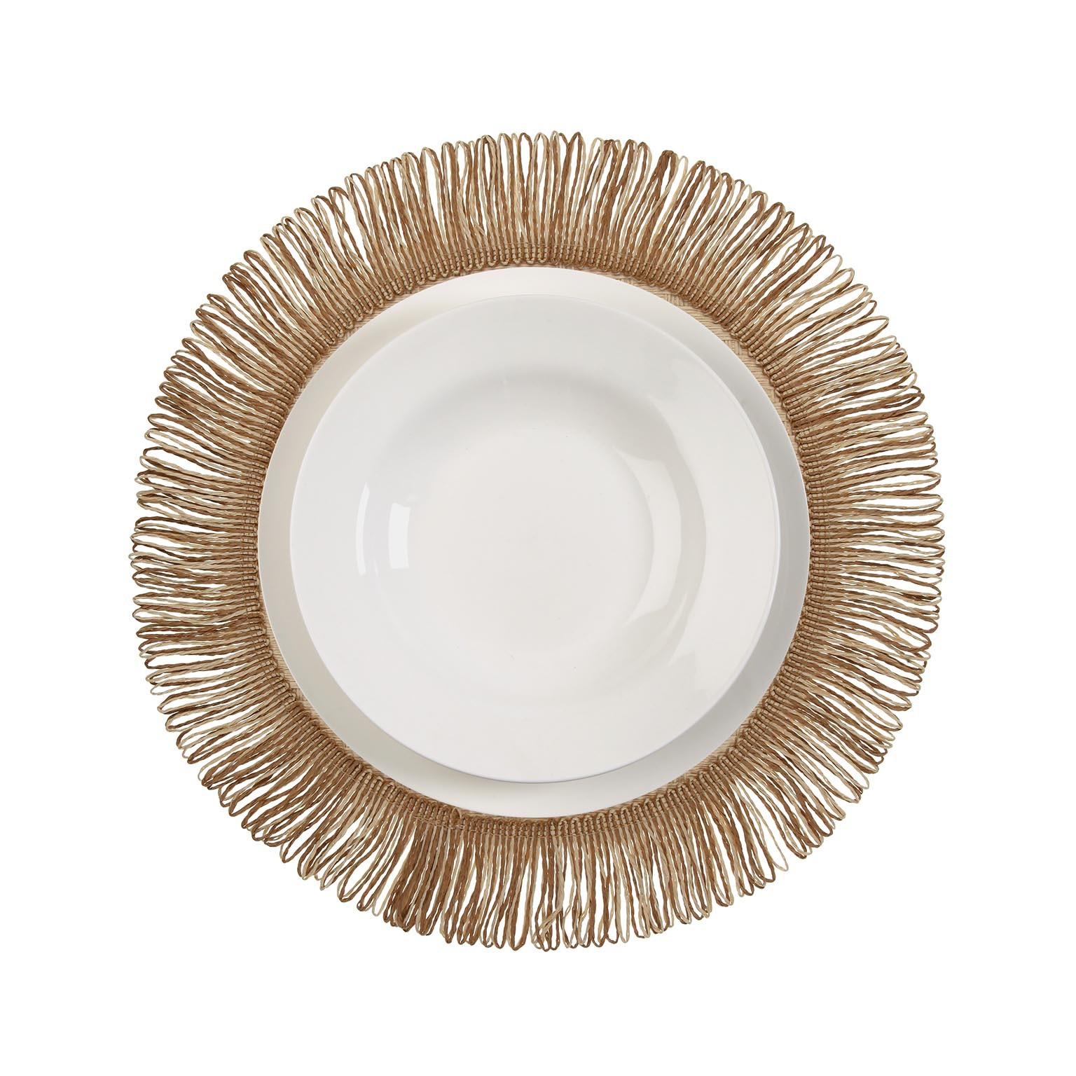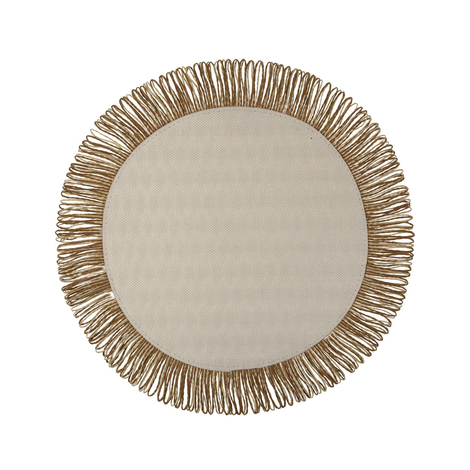 La tovaglietta di carta rotonda naturale è un elemento versatile per il servizio da tavola, realizzata con materiali eco-compatibili: 95% carta e 5% poliestere, con dettagli in cáscara de maíz.