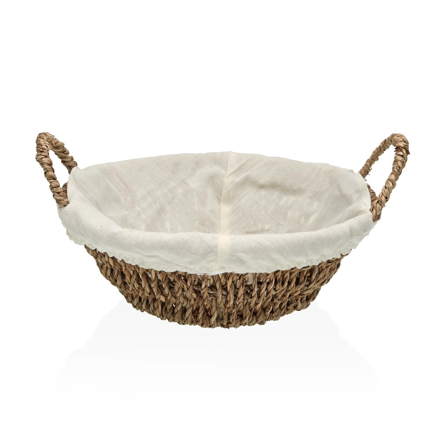 Cesta rotonda in alga, ideale per l'organizzazione degli accessori da bagno.