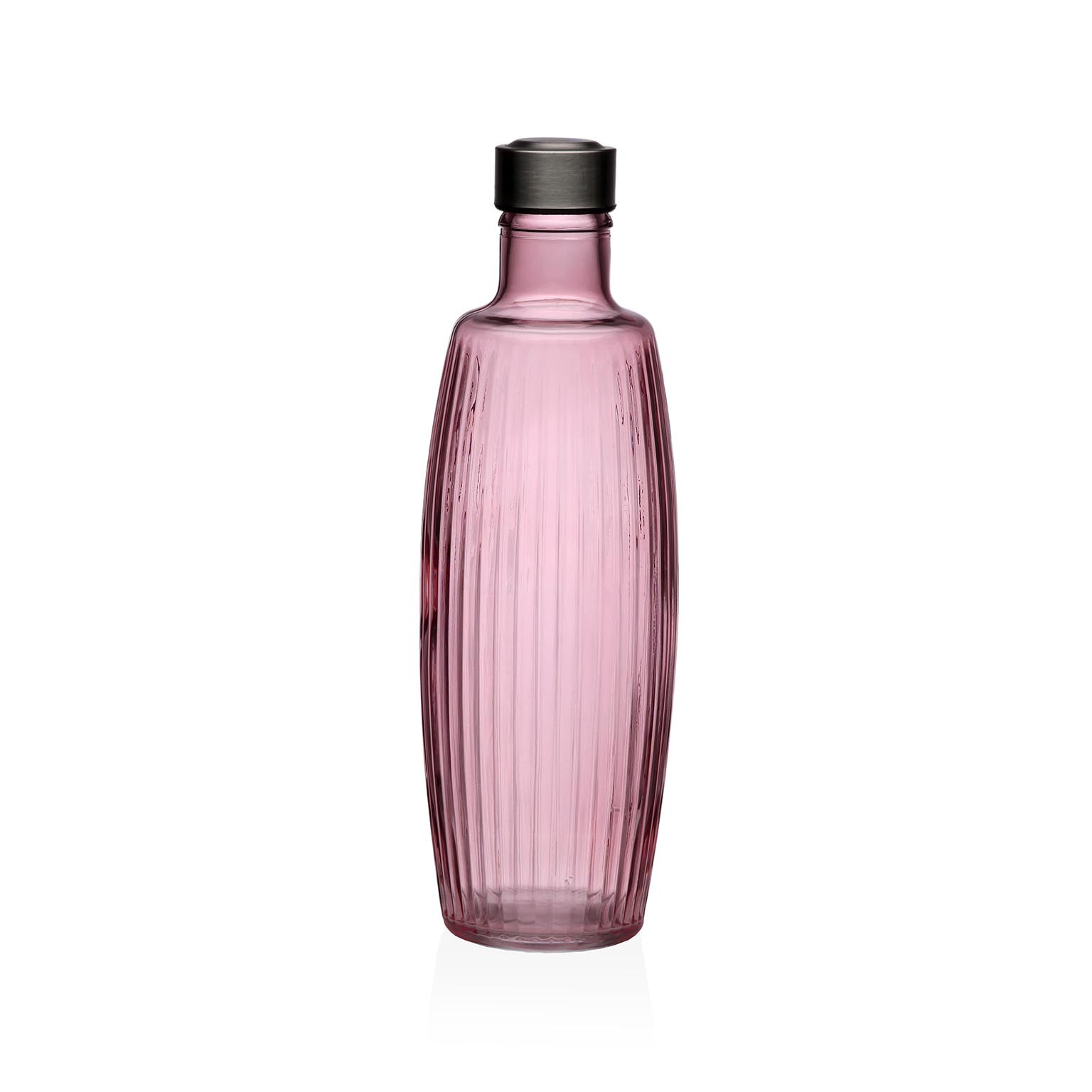 La bottiglia in vetro 1,2L Venus rosa è un elegante contenitore per liquidi, realizzato in vetro con tappo in acciaio inox, che garantisce una chiusura ermetica.