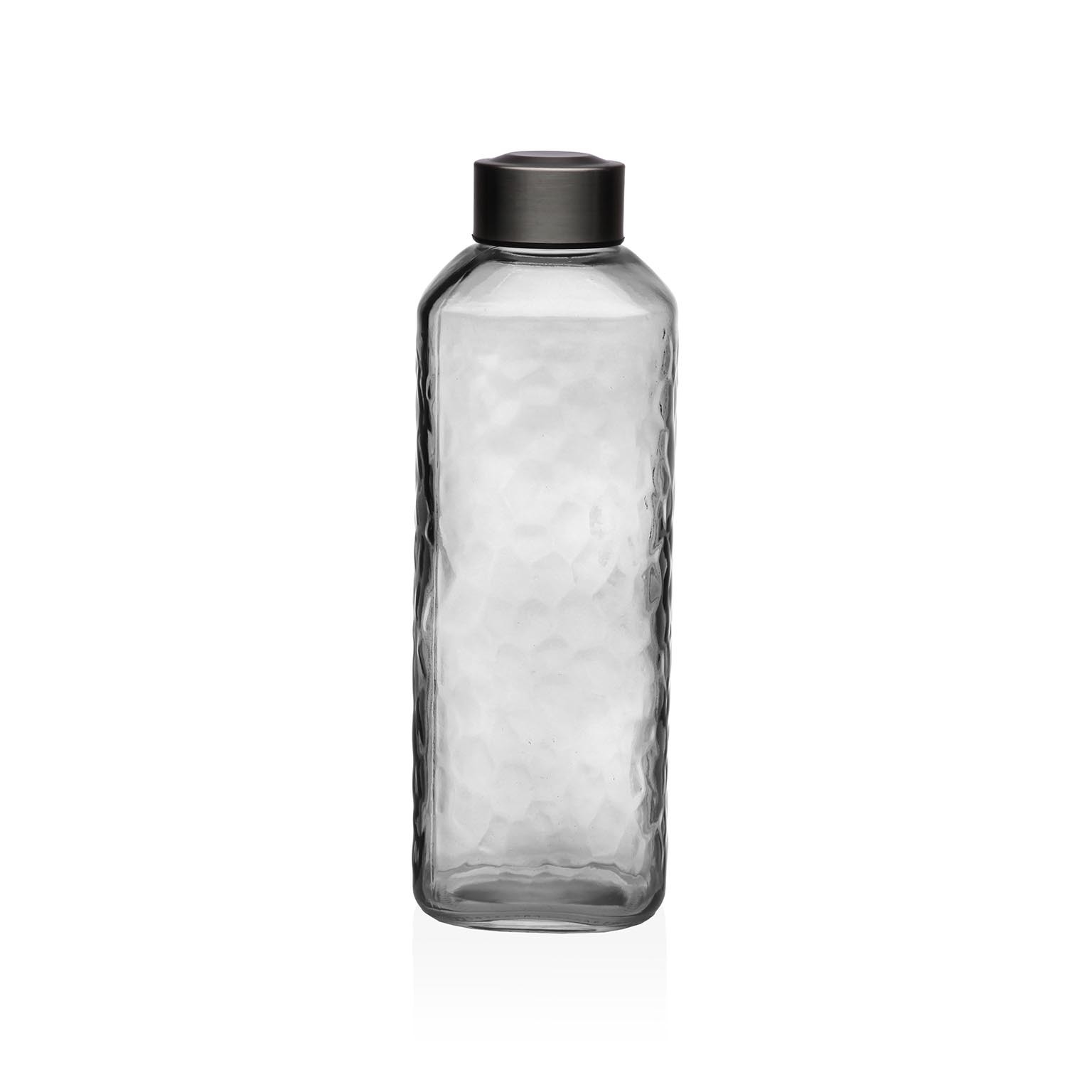Bottiglia in vetro trasparente da 1 litro, ideale per uso alimentare, perfetta per contenere acqua, succhi e tè freddo.
