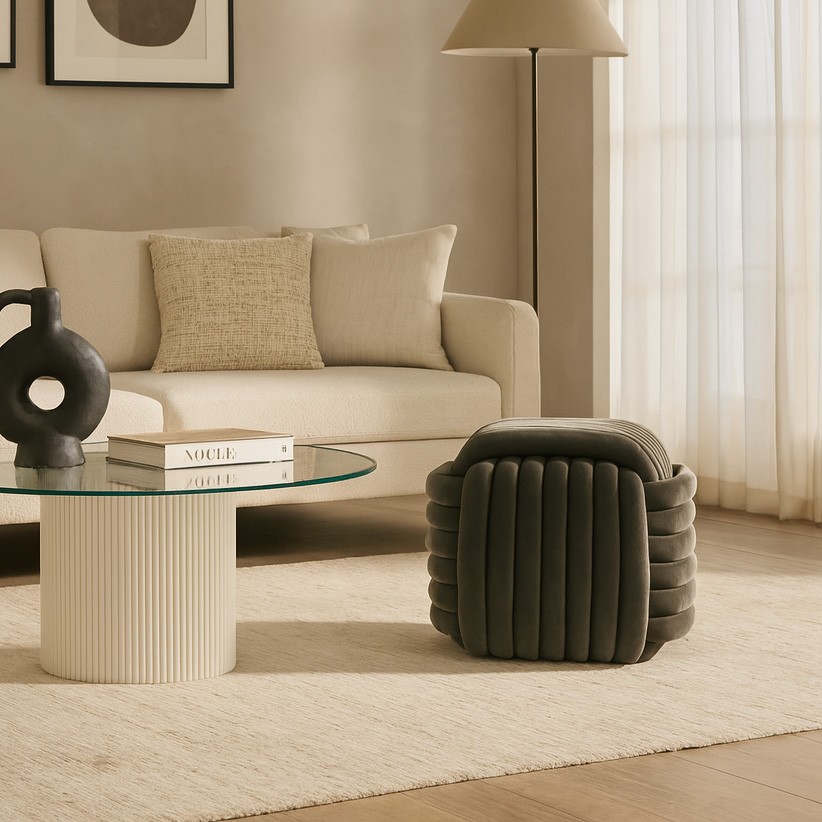 Realizzato con una robusta struttura in legno MDF e rivestito in morbido poliestere, questo pouf combina comfort e stile moderno.