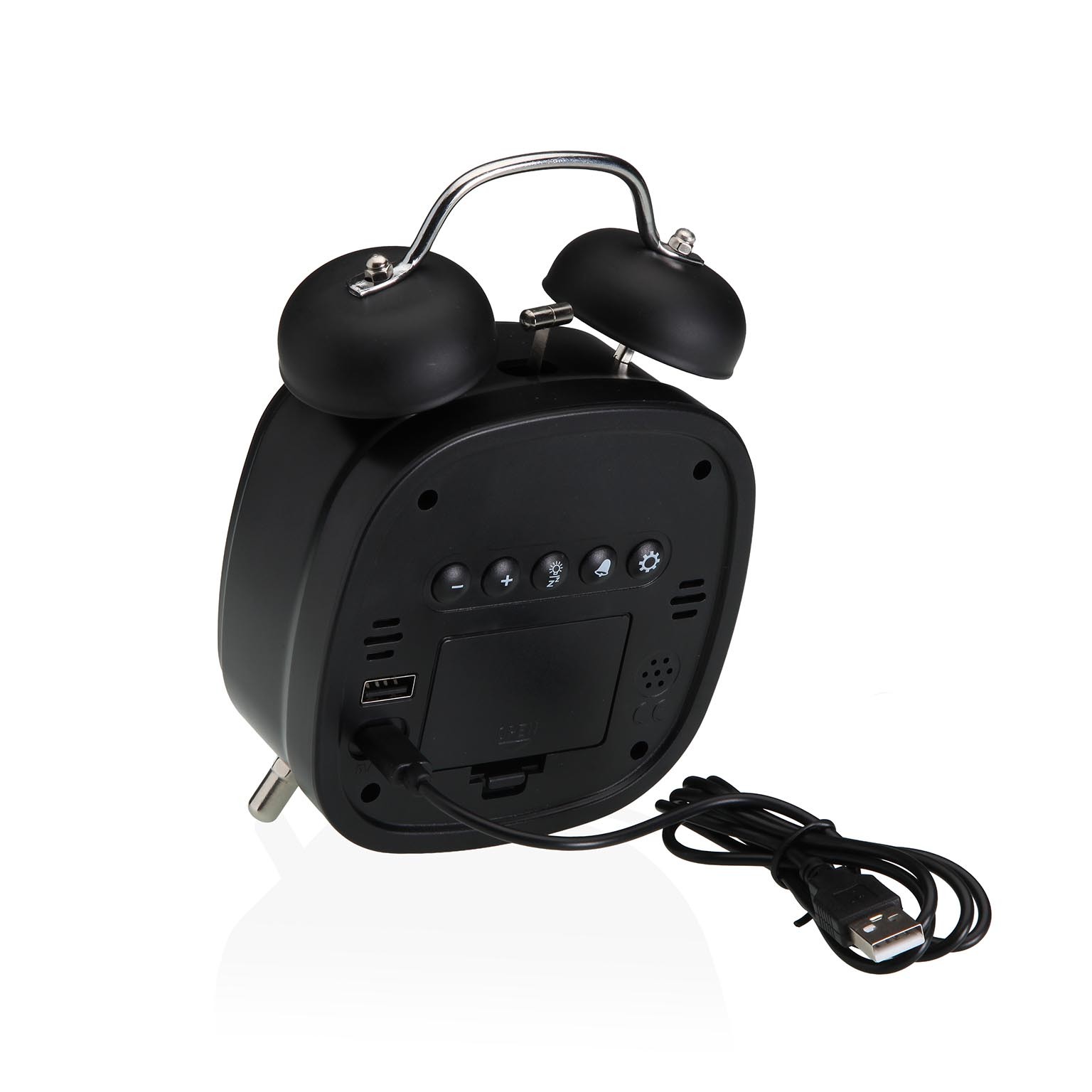 La sveglia digitale nera è un accessorio funzionale e dal design moderno, realizzata in metallo con finiture eleganti.