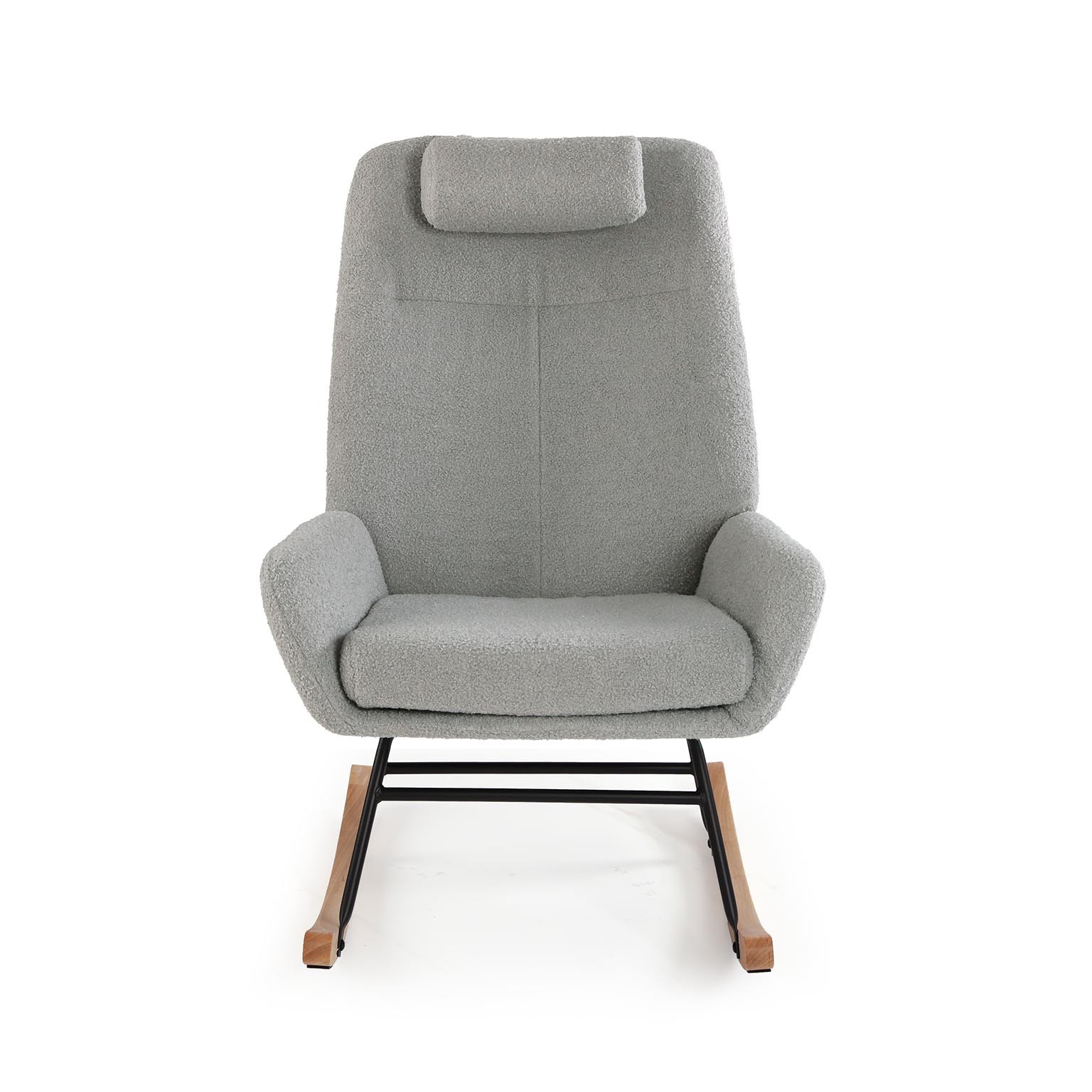 Sedia a dondolo con cuscino grigio, un complemento d'arredo che unisce design moderno e funzionalità.