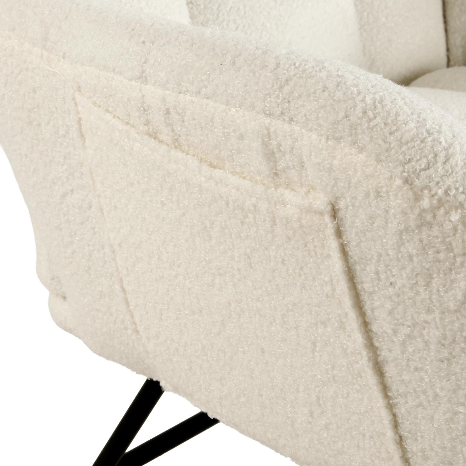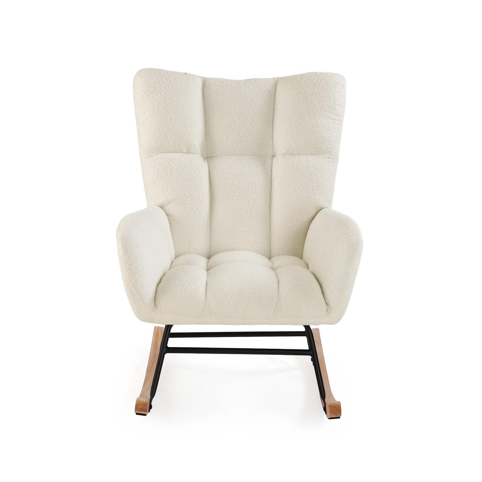 Scopri la sedia a dondolo con braccioli beige, un complemento d'arredo che unisce comfort e design moderno.