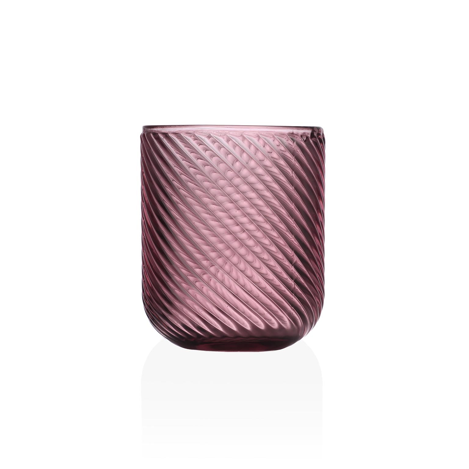Il bicchiere in cristallo rosa rappresenta un elemento distintivo per la cucina e la sala da pranzo, con un design moderno caratterizzato da linee sinuose.