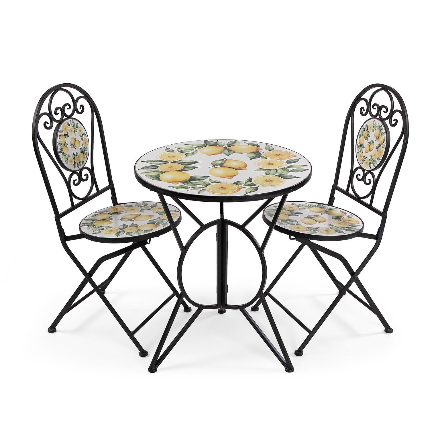 Set tavolo e 2 sedie da giardino in metallo, ideale per arricchire gli spazi esterni come terrazze, balconi e giardini.